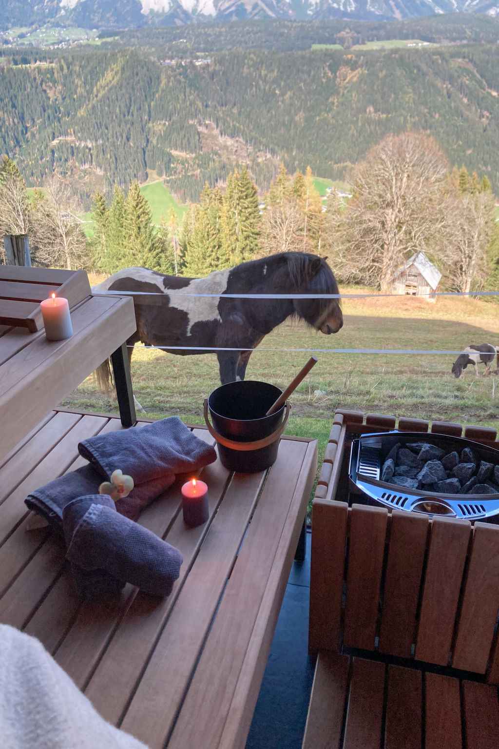 commun: grand jardin 1'300 m2 (pas clôturé) avec pelouse. infrastructures de la maison: sauna (en sus). réduit pour bicyclettes, local pour les skis, appareil de séchage de chaussures à ski. service boulangerie. accès en voiture jusqu'à le terrain par un chemin de 6 km de long (route de montagne). en hiver, merci de prévoir des chaînes. magasins 3 km, supermarché 6 km, restaurant 2.5 km, arrêt de bus 250 m, gare ferroviaire "schladming" 6 km, piscine 6.5 km, piscine couverte 6.5 km, baignade en lac "pichl" 12 km. terrain de golf (18 trous) 11 km, train de montagne 1 km, téléski 1 km, pistes de ski 1 km. arrêt du ski-bus 300 m. les domaines skiables de renommée sont facilement accessibles: planai 6 km, hochwurzen 1 km. veuillez noter: le propriétaire habite dans la même maison. vous trouverez un sauna extérieur panoramique payant (de 20€ de l'heure).