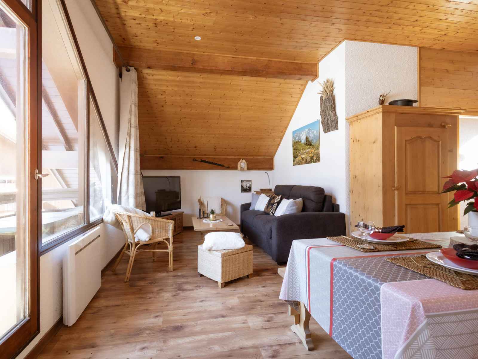 (27m²/ Est) : télévision, lecteur DVD. Salle de bains : vasque, douche, sèche-cheveux et lave-linge. WC indépendant. SERVICES/OBSERVATIONS : Animaux acceptés. Linge de lit et de toilette non fournis. Ménage de fin de séjour non inclus. Kit bébé à disposition : lit. Casier à skis. Balcon (8m²/ Est). Garage fermé. ATTENTION : Caution par paiement dématérialisé avant votre arrivée.