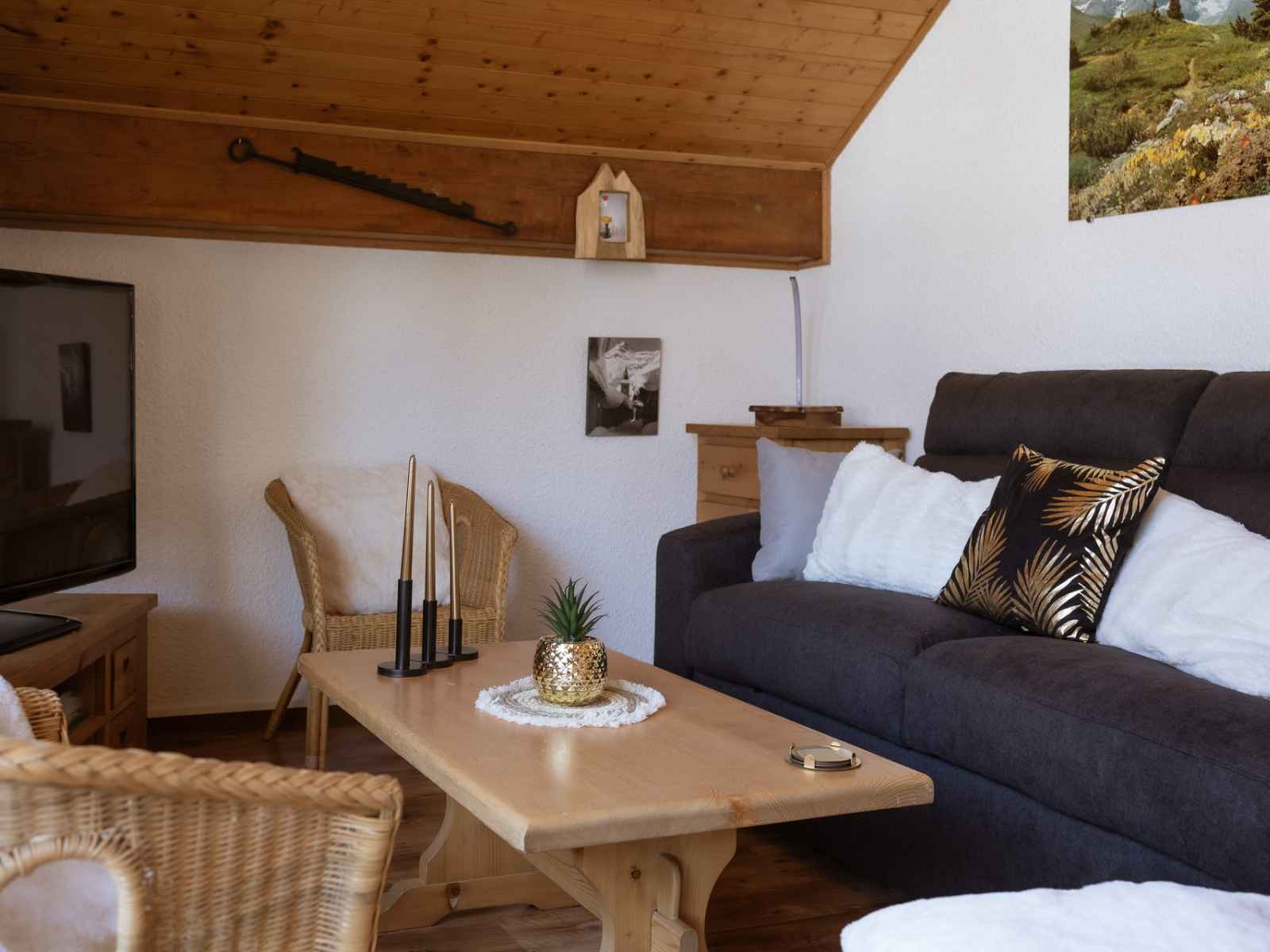 séjour (27m²) : 1 canapé convertible 2 places (140x190cm)