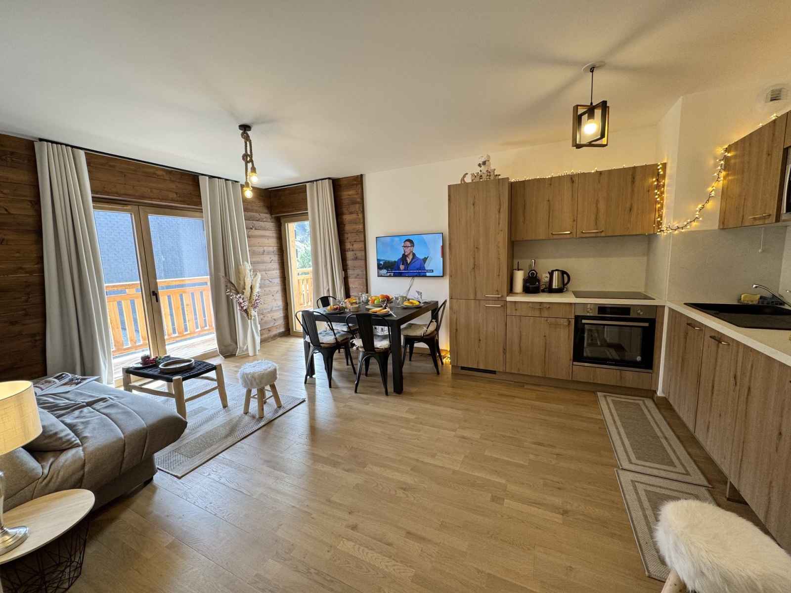 d'une mezzanine. D'une salle de bain et de deux WC un dans la salle de bain et un second séparé. Petit balcon exposé sud, vue sur la piste . L'appartement est équipé de: un enceinte, d'une cheminée éléctrique, four combi, une bouilloire , une machine à café dolce gusto, un mixeur plongeant, un grille pain. Les couchages s'organisent comme suit : - chambre 1 : lit superposé en 90 x 180 et un lit tiroir - mezzanine : 1 lit en 140 x 200 - séjour : canapé convertible en 140 x 200 Ménage de fin de séjour non compris et linge de maison en option (Pack draps et serviettes 16€/personne), nous consulter. Animaux interdits. Toutes nos locations sont strictement NON-FUMEUR. L’appartement dispose d’un casier à skis. Il n’y a pas de place de parking attitrée, mais le stationnement est gratuit dans toute la station.