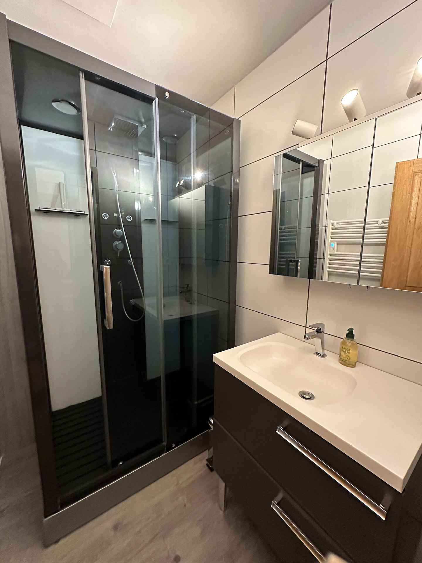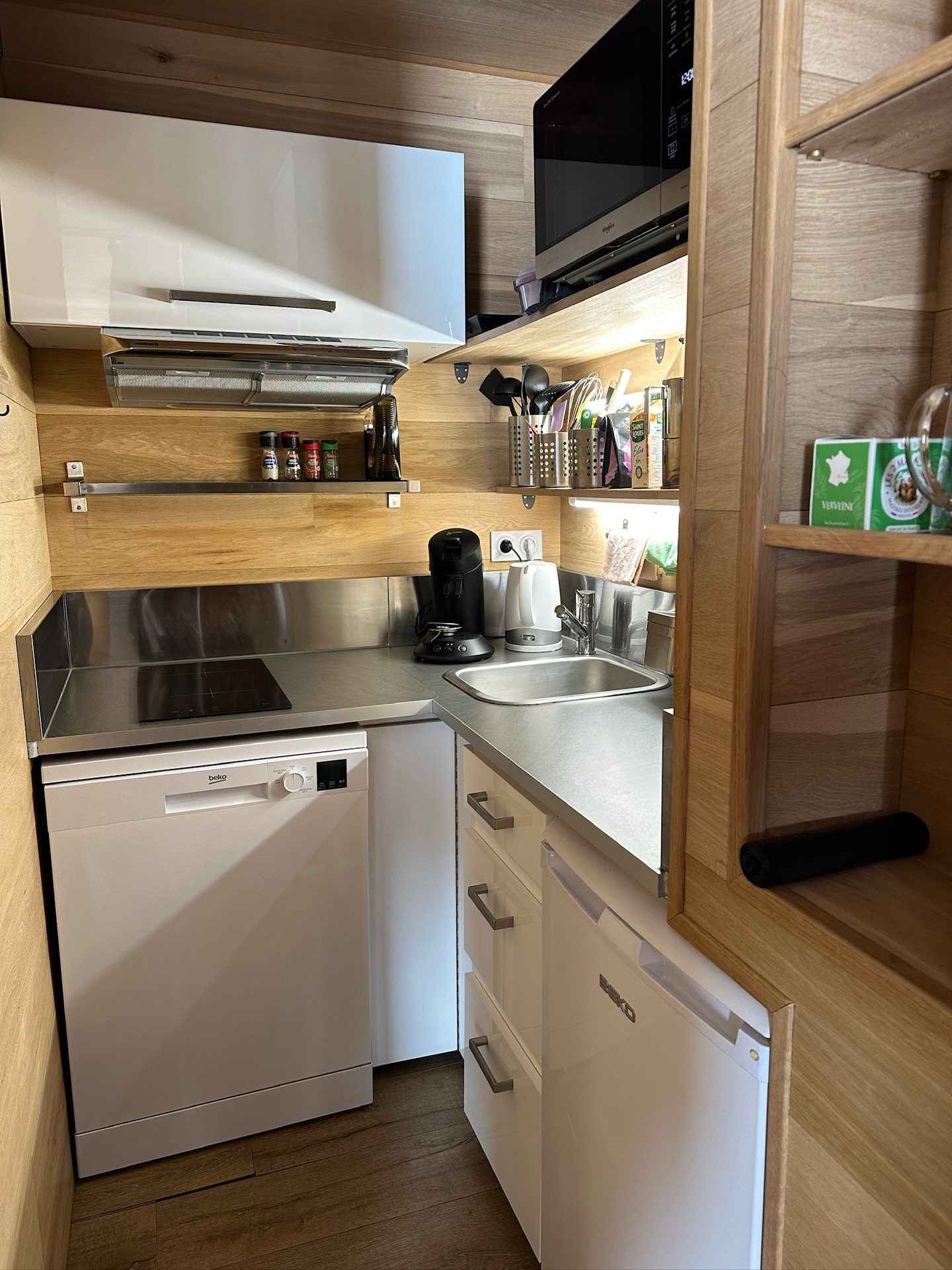 d'eau. Cet appartement est composé d'un coin montagne avec lit en 90x200, d'une chambre avec lit double en 160x200 ainsi qu'un canapé lit double en 160x200. Il y a une kitchenette équipée avec : Un lave-vaisselle, une télévision, des plaques vitrocéramique, un micro-ondes combi, un grille-pain, un presse-agrume, une bouilloire, un appareil à raclettes, un appareil à gaufres ainsi qu'une machine à café Senseo. Ménage de fin de séjour non compris et linge de maison en option (Pack draps et serviettes 16€/personne), nous consulter. Animaux interdits. Toutes nos locations sont strictement NON-FUMEUR. L’appartement dispose d’un casier à skis. Il n’y a pas de place de parking attitrée, mais le stationnement est gratuit dans toute la station.