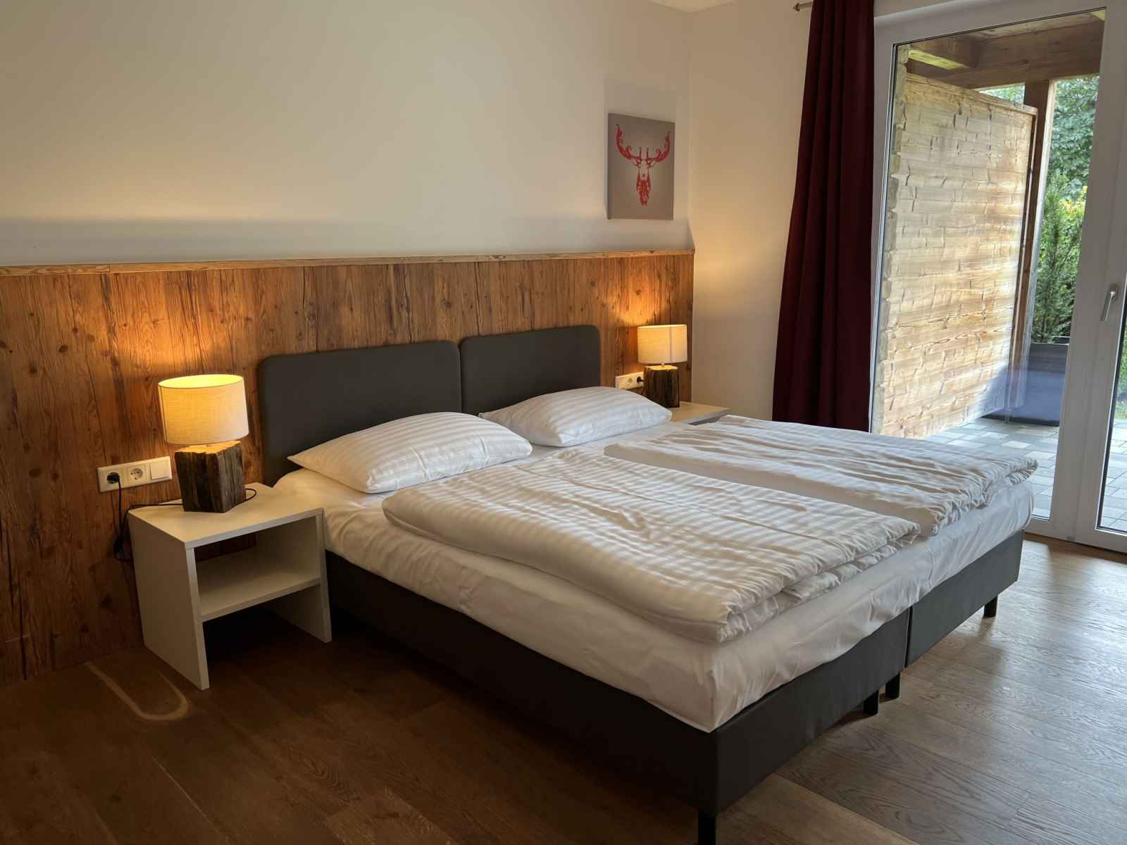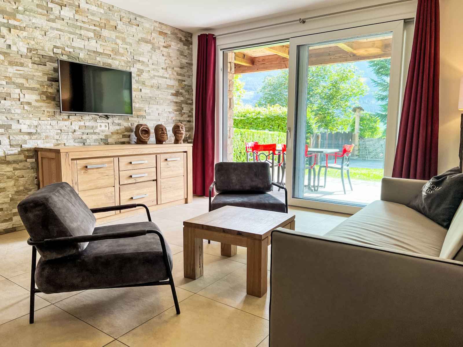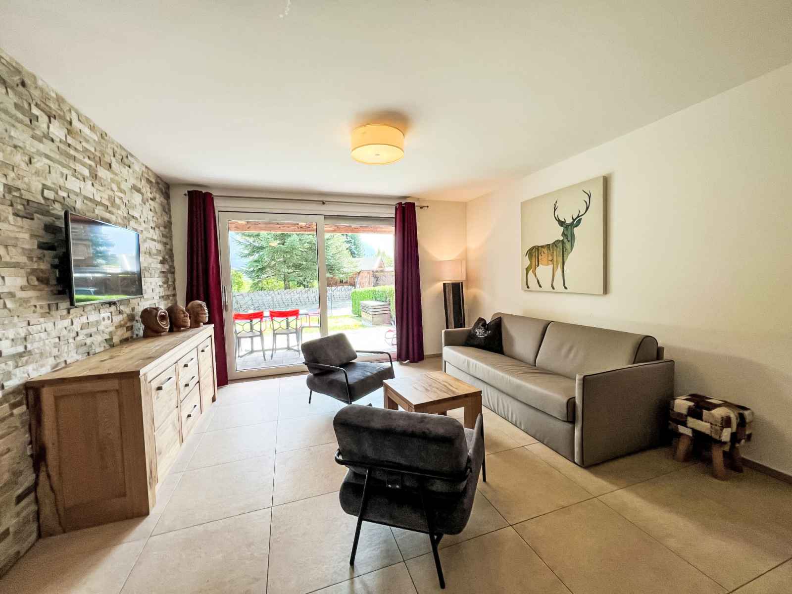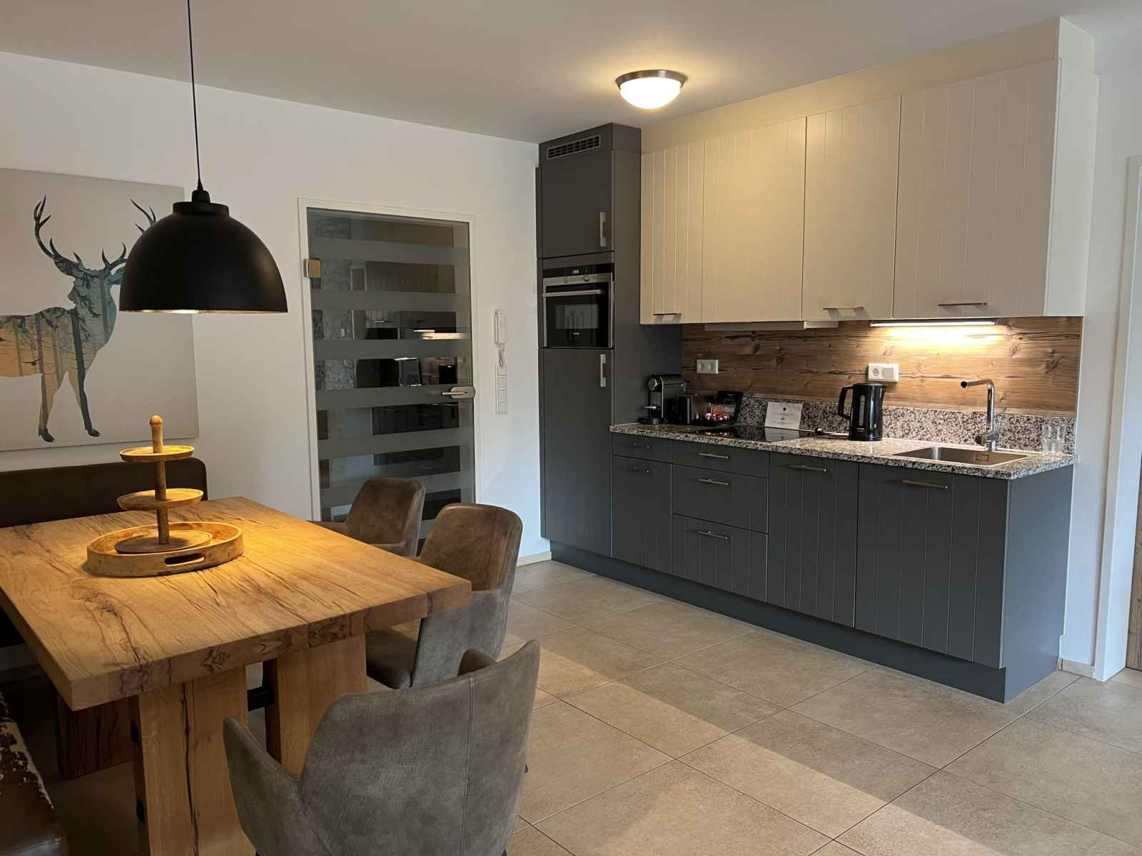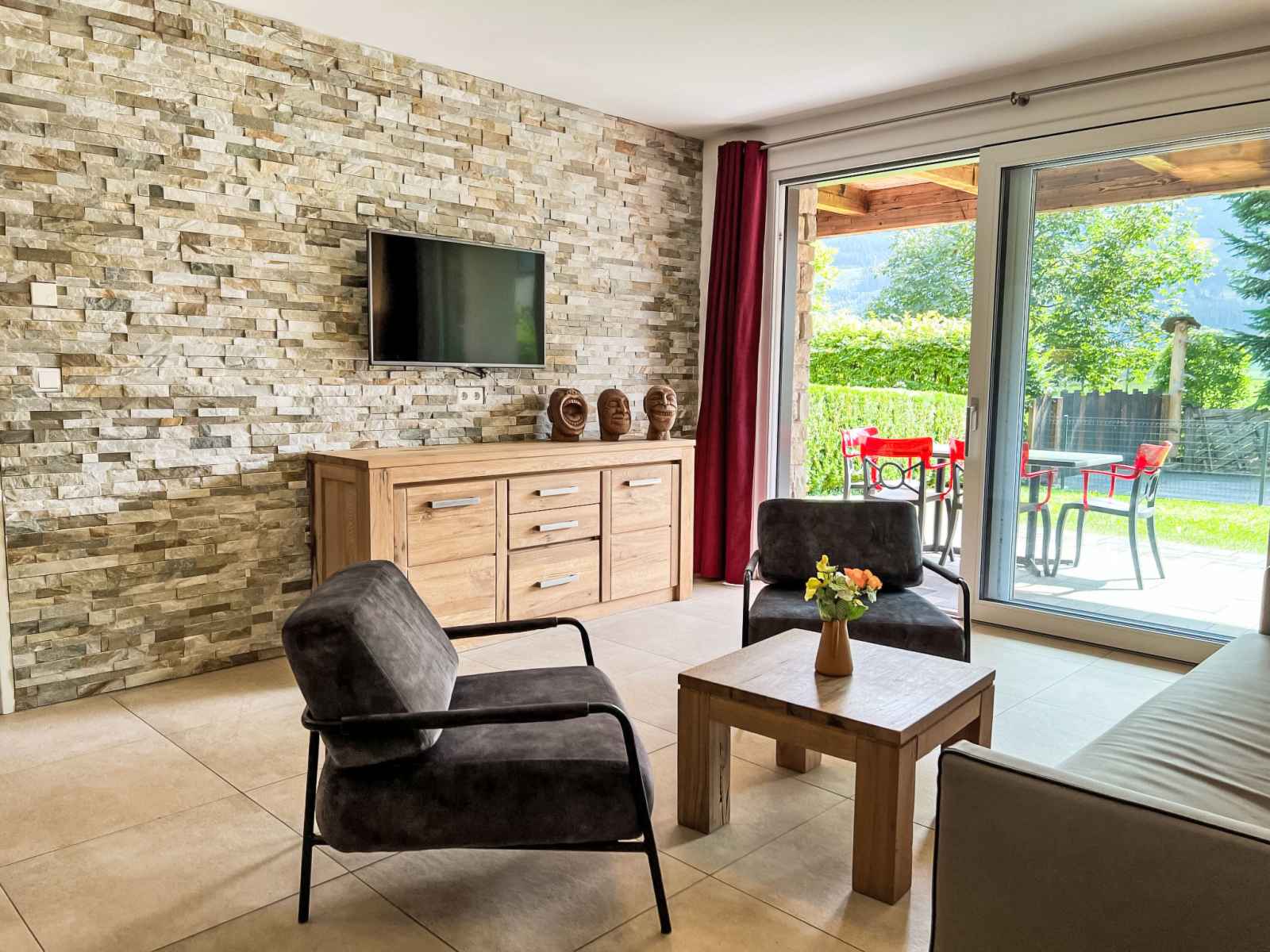 Cuisine/séjour (four, lave-vaisselle, 4 plaques vitrocéramiques, grille-pain, bouilloire électrique, cafetière électrique) avec coin repas. Douche/WC, bain/douche/WC. Chauffage par le sol. Sol en parquet, sol en pierres naturelles. Grande terrasse 20 m2, grand jardin. Meubles de terrasse. Vue sur les alentours. A disposition: fer à repasser, sèche-cheveux. Internet (Connexion WIFI, gratuit). Garage. Veuillez noter: logement non-fumeur. Détecteur de fumée, extincteur. 50628-001591-2023