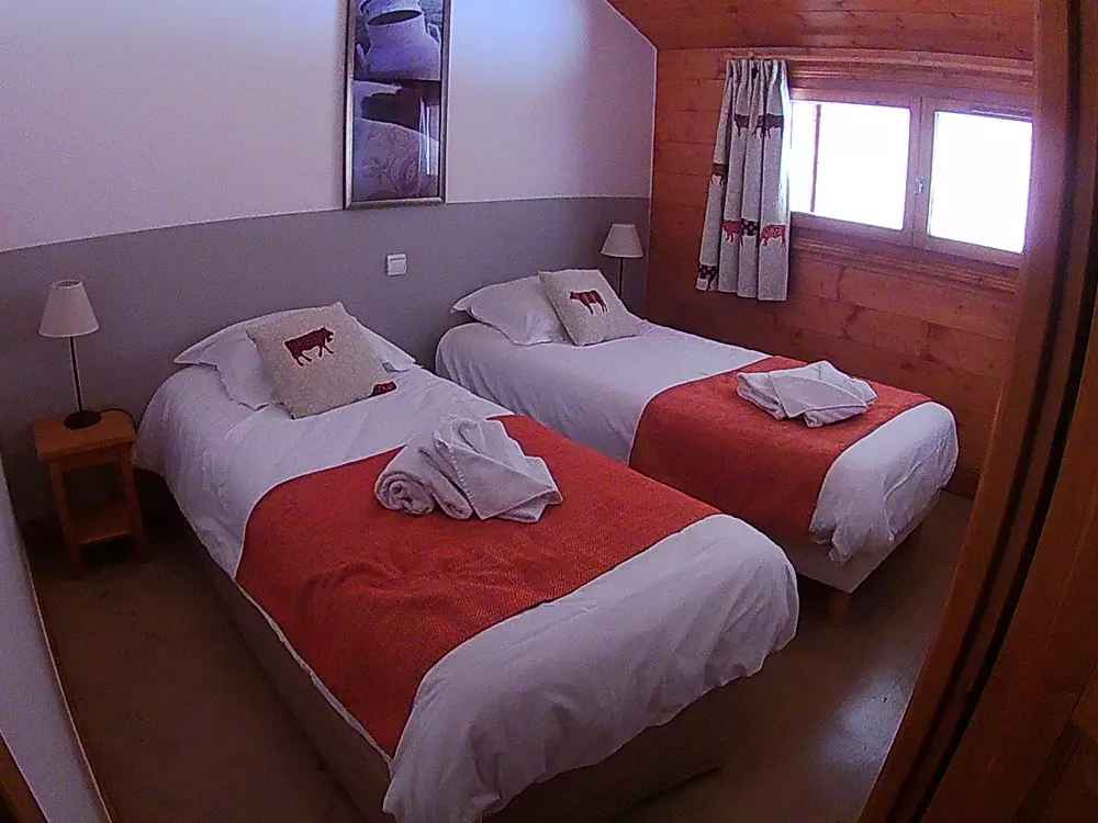 chambre avec 1 lit double, et 1 chambre avec 2 lits simples.