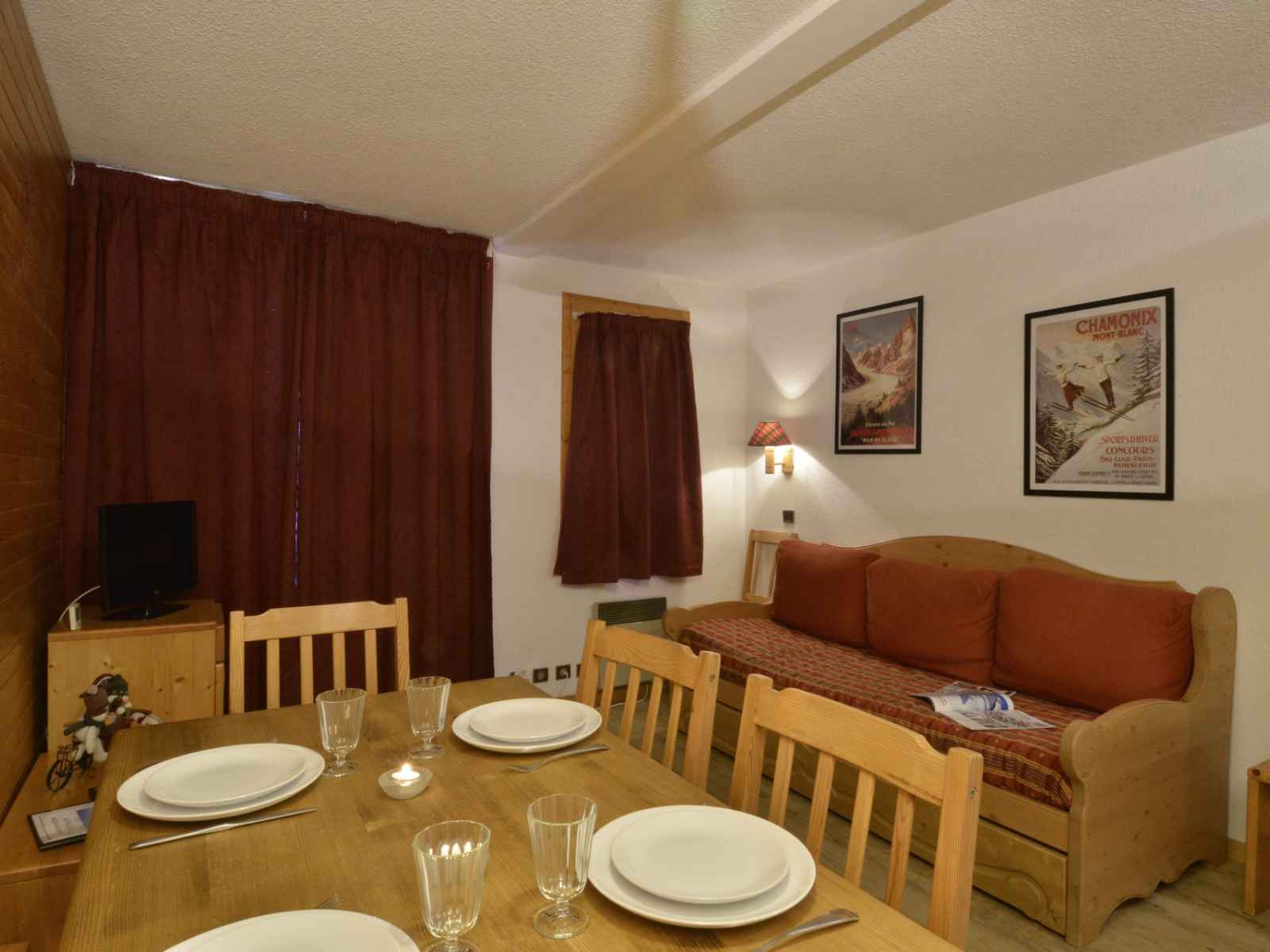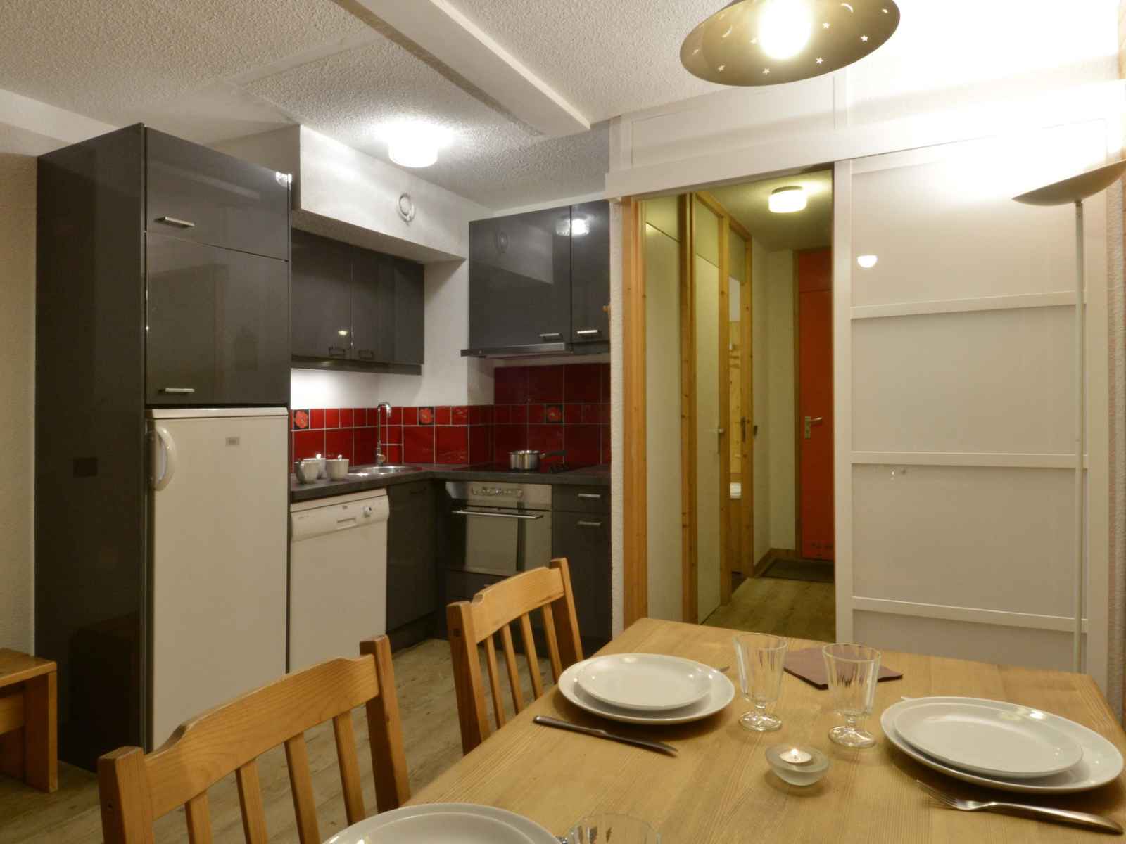 céramique 4 feux, un four multifonctions et un lave-vaisselle Séjour : 1 lit banquette 1 personne et 1 lit gigogne, 1 téléviseur écran plat Chambre 1 : 1 lit 2 personne Chambre 2 : 2 lits superposés et 1 lit simple Salle de bain 1 : baignoire Salle de bain 2 : douche 2 WC séparés Caution : 800 euros 2 casiers à ski 309 et 310 Draps et serviettes non fournis Equipé de couvertures WIFI station payant Animaux non tolérés