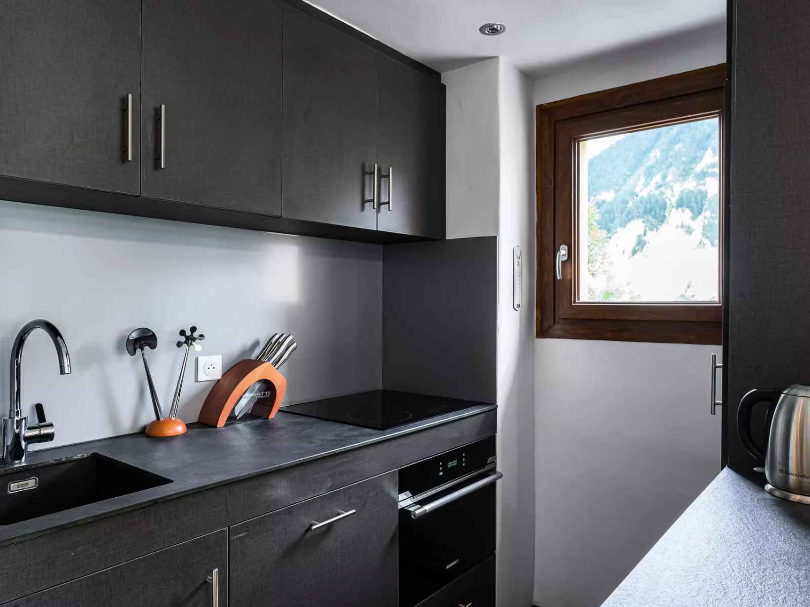 - Cuisine équipée ouverte sur salon : lave vaisselle, plaque de cuisson induction, mircoonde combi, frigidaire avec compartiement congélation