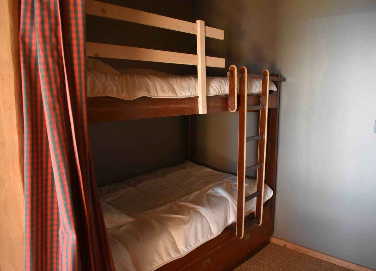 Le logement dispose de 2 chambres, dont une avec TV et bénéficiant d'une suite parentale avec une douche et lavabo, un coin cabine avec deux lits superposés