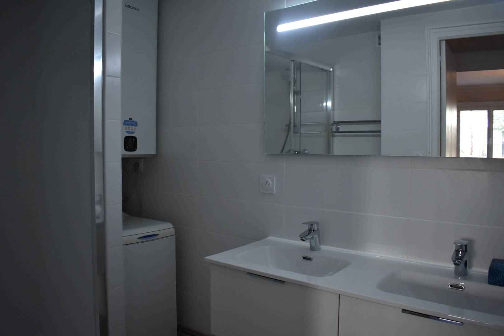 • Equipements : Balcon, Bouilloire, cafetière à filtre, cafetière Nespresso, chauffages, double vasque, DOUCHE, Four, Grille pain, hotte électrique, lave-vaisselle, lit double, lits simples x2, TV