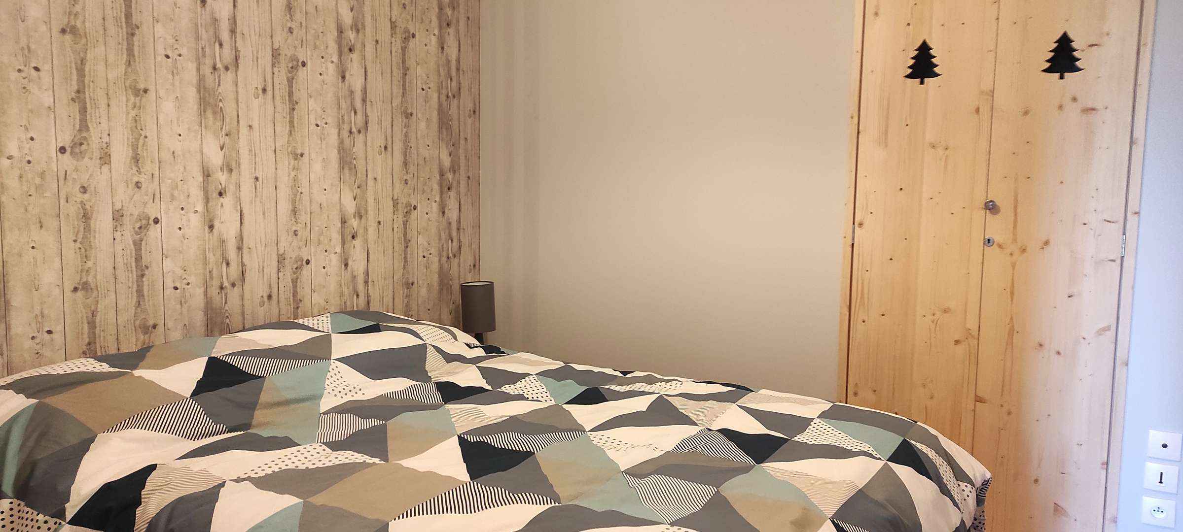 Chambre 1 – Chambre borgne (sans fenêtre) avec un lit double (140 cm) et placard de rangement.