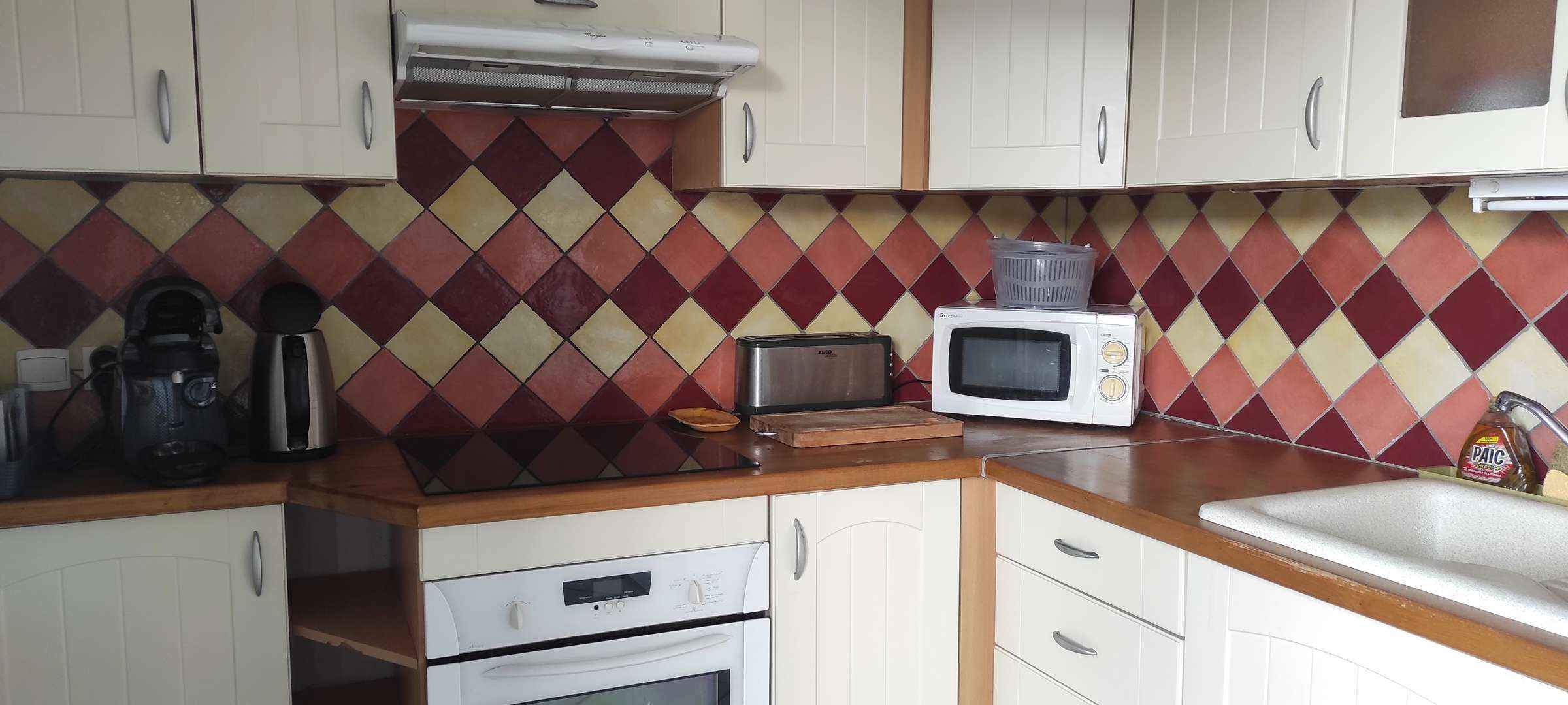 • Equipements : Bouilloire, Cafetière Tassimo, Chauffage, DOUCHE, Four, GRILLE PAIN, HOTTE ASPIRANTE, lave linge, LAVE VAISSELLE, lit double 140, lit simple 90, lits superposes, Micro-onde, parking exterieur, Réfrigérateur, Sèche linge, Seche serviette, TV