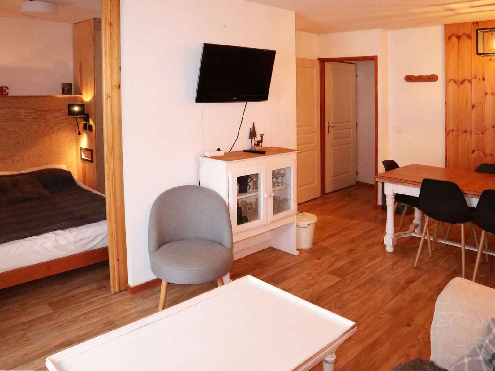 séjour avec un canapé non convertible, une cuisine entièrement équipée, un balcon. A l'étage une chambre avec 2 lits 1 place collés en 80 cm et 2 lits superposés 1 place, un coin montagne avec 1 banquette bz 2 places, une salle de bains et WC indépendants, balcon vue sur les pistes.