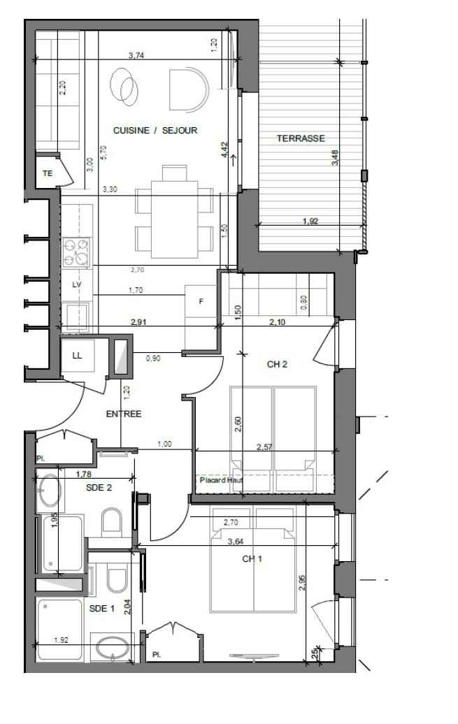 - Séjour/cuisine 19.9m²
