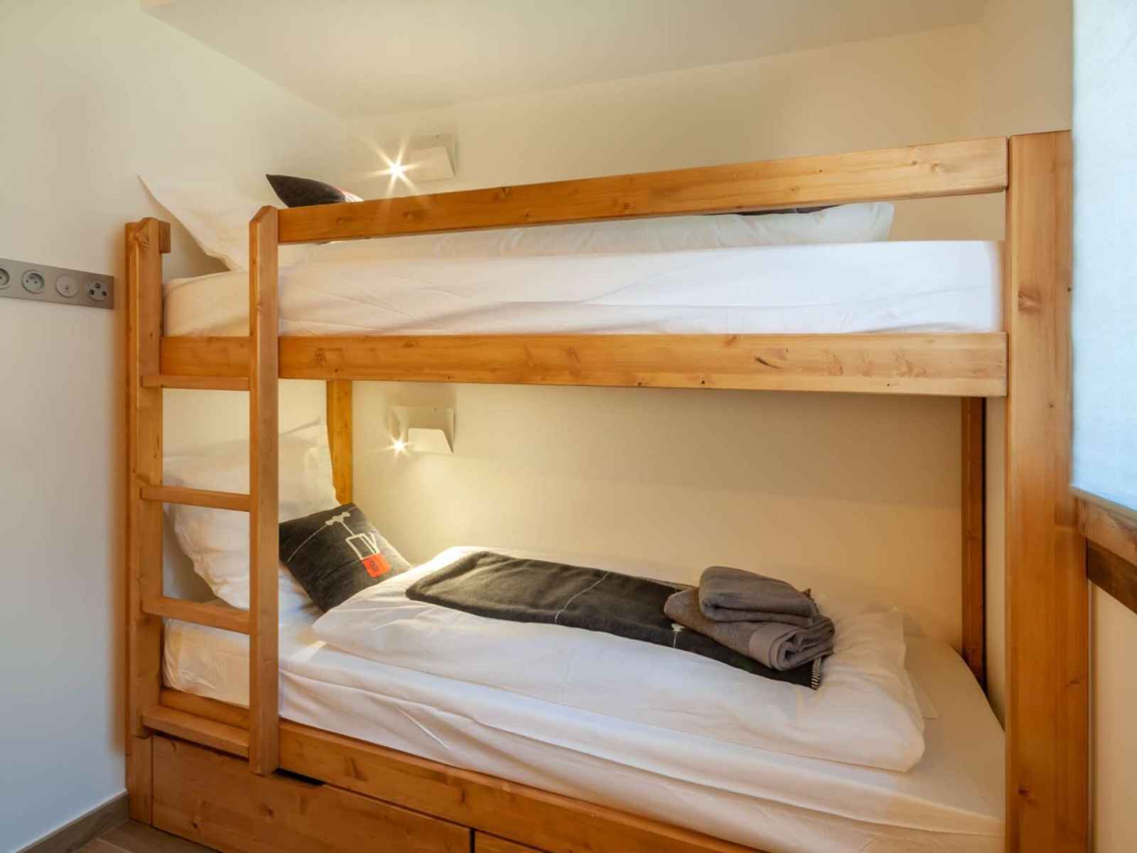 Une seconde chambre avec un lit double ou deux lits simples et deux lits simples superposés, rangement