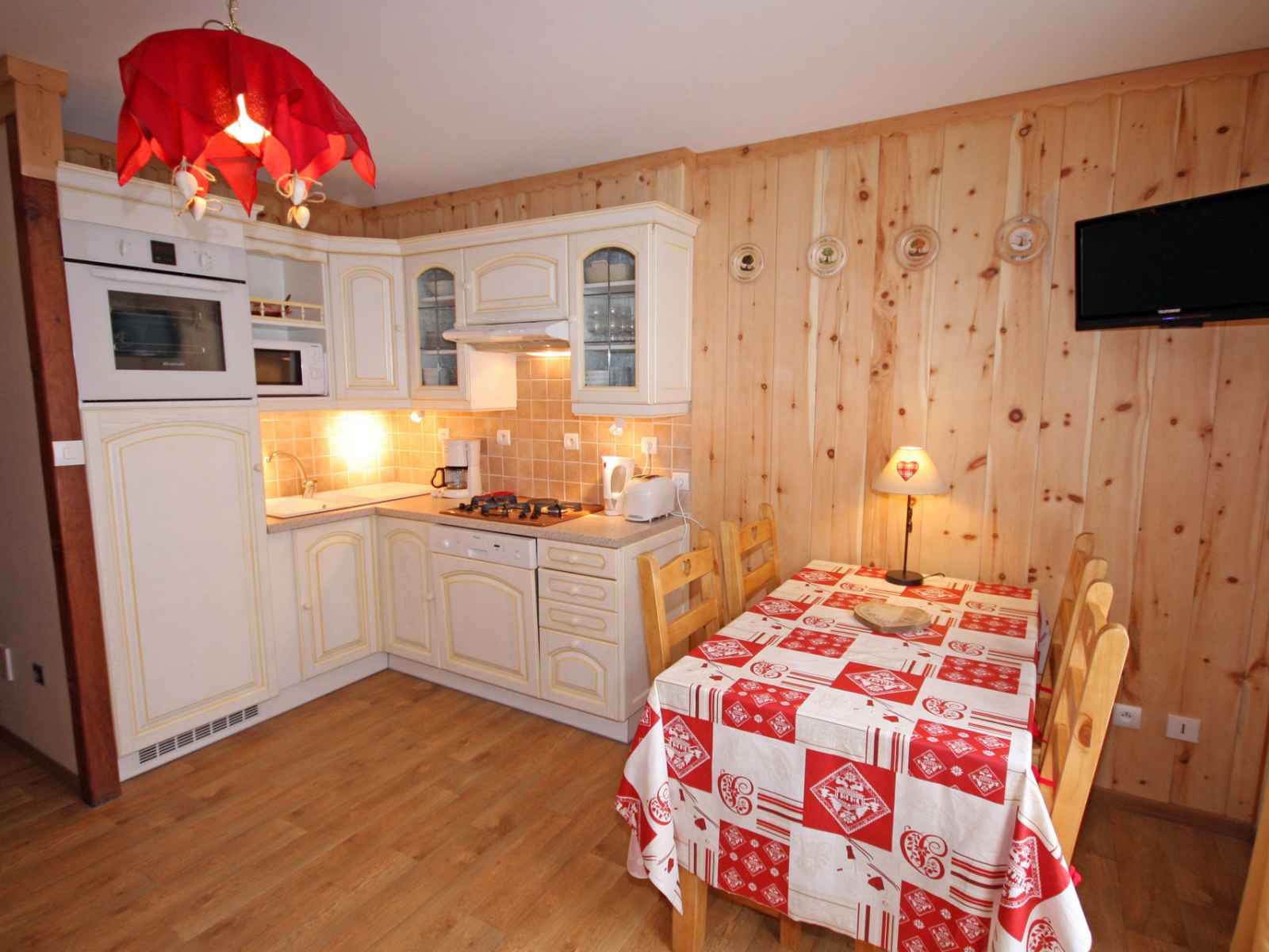 - coin cuisine : four, micro-ondes, lave-vaisselle, réfrigérateur (184l) congélateur (18l), plaque gaz (3 foyers) et plaque