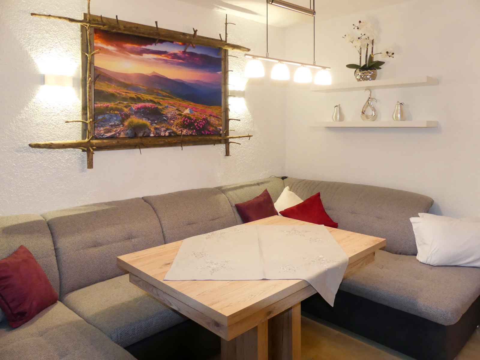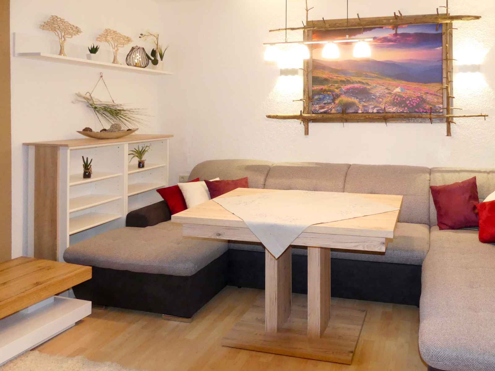 micro-ondes, congélateur, cafetière électrique) avec coin repas. Douche/WC, WC séparé. Chauffage au fuel. Terrasse, jardin. Meubles de terrasse. A disposition: chaise haute pour enfant. Internet (Connexion WIFI, gratuit). Veuillez noter: une chambre double est à l'exterieur de l'appartement. Logement non-fumeur. Extincteur.