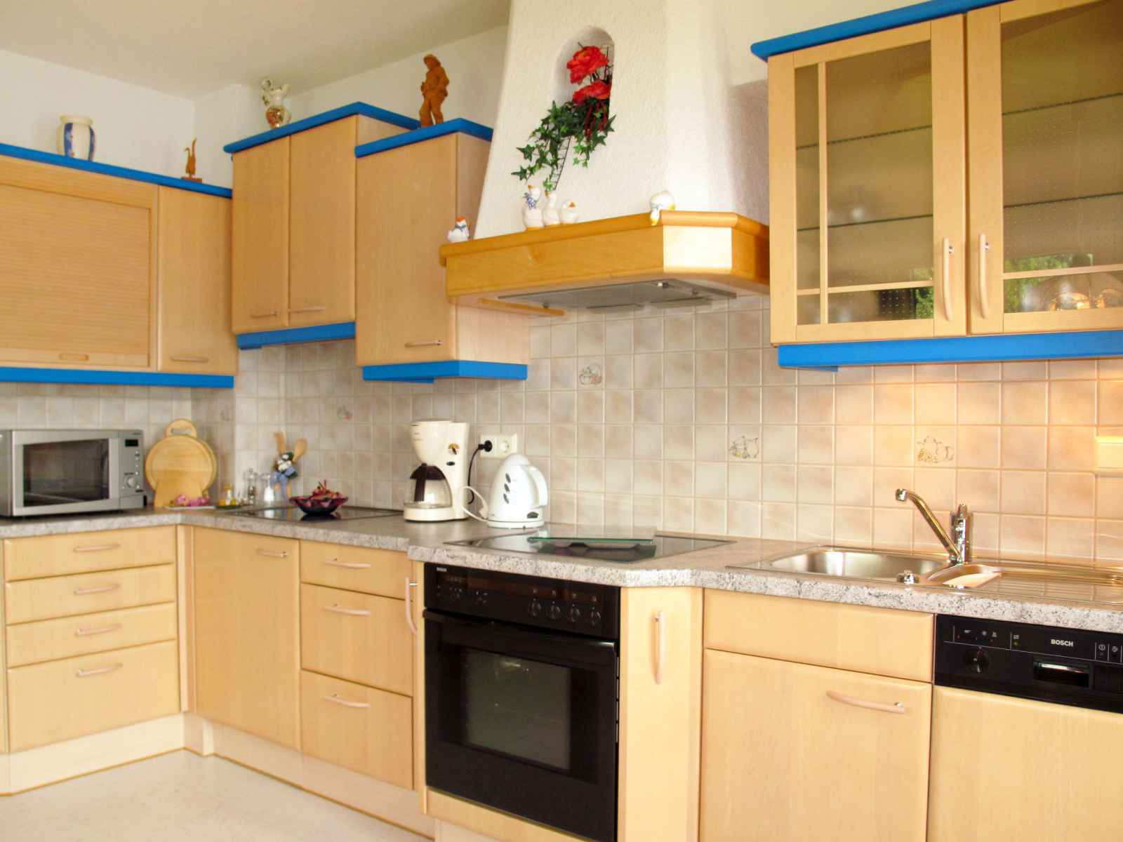 (four, lave-vaisselle, 4 plaques vitrocéramiques, grille-pain, bouilloire électrique, micro-ondes, cafetière électrique) avec coin repas et TV (satellite). Sortie sur le balcon. WC séparé, bain/douche/WC. Chauffage au fuel. Sol en parquet. Balcon, jardinet 20 m2. Mobilier de balcon, barbecue. Superbe vue panoramique sur les montagnes et la vallée. A disposition: chaise haute pour enfant, lit bébé. Internet (Connexion WIFI, gratuit). Veuillez noter: logement non-fumeur. Entrée privée, détecteur de fumée, extincteur.
