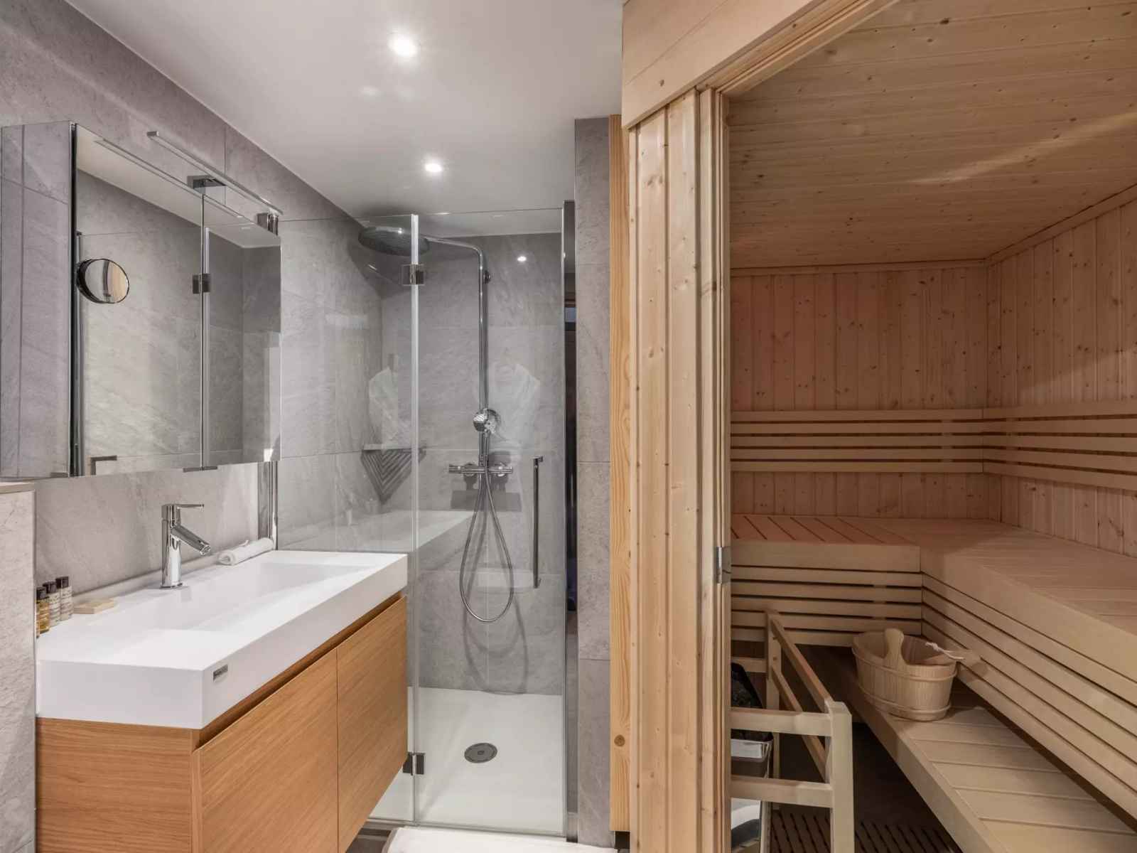 - Salle de bain indépendante avec sauna pour 4 personnes, simple vasque, toilette