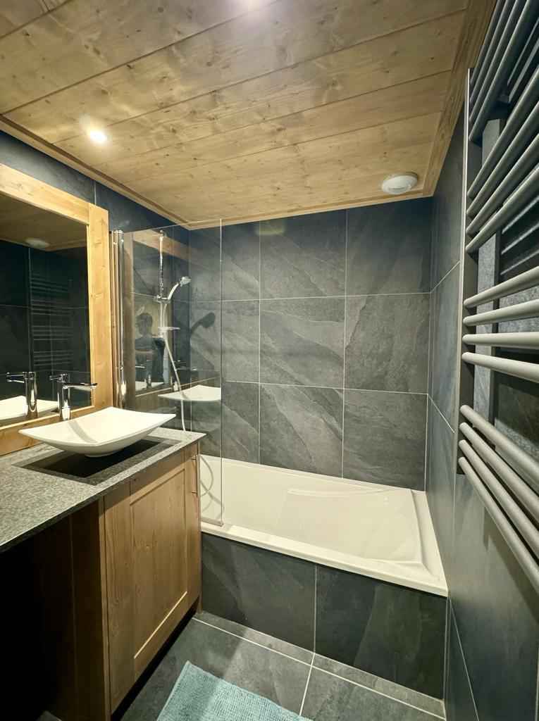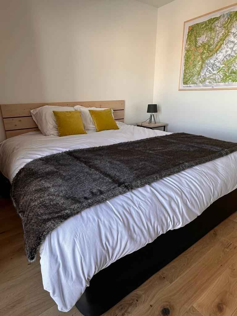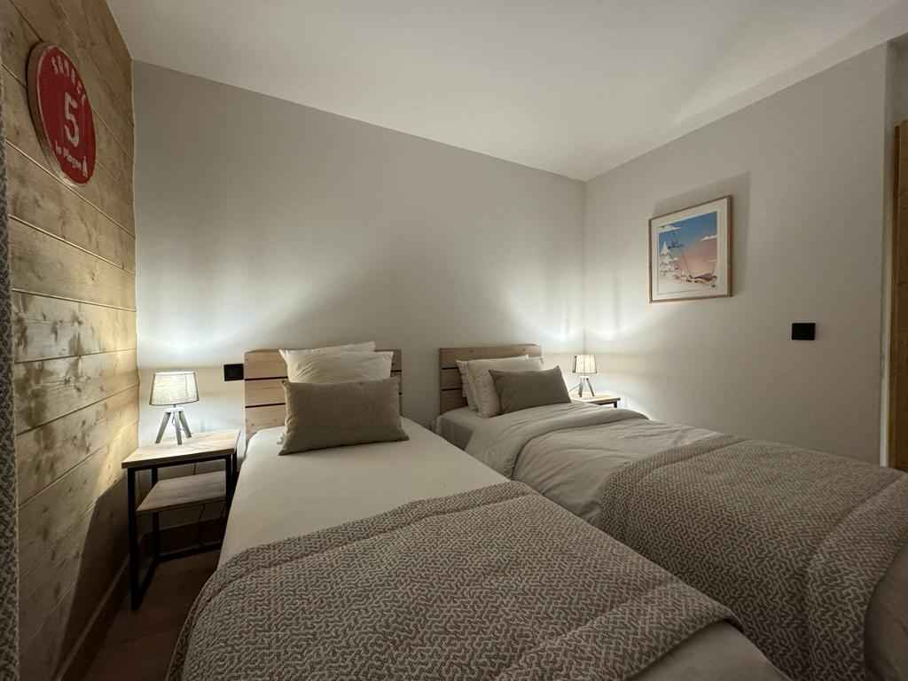 la résidence avec ascenseur, appartement entièrement neuf proposant des prestations « hôtelières » comme (lits faits, linge de toilette fourni et ménage de fin de séjour (hors coin cuisine, placards et literie rangés). Chambre 1 « parentale » : 1 grand lit double (180) avec une salle de douche à l'italienne et WC Chambre 2 : 1 lit double (180 x 200) Chambre 3 : 2 lits jumeaux dissociables (90 x 200) Pour votre confort le séjour est équipé de 2 canapés assortis. La cuisine ouverte sur le séjour est équipée d’un grand plan de travail, 4 feux induction, d’un grand réfrigérateur/congélateur, 1 four à pyrolyse, 1 hotte intégrée, 1 lave vaisselle, d’une cafetière « Nespresso » ainsi que d’une cafetière filtre, grille pain, bouilloire. Pour vivre à plusieurs sans se bousculer : Une salle de bain commune à tout le logement avec lave linge séchant . Des WC indépendants supplémentaires avec lave main communs à tout le logement Casier à ski avec sèche chaussures Prestations incluses : Equipé de couettes Lits faits- Draps de bain + serviette de toilette fournis - Ménage de fin de séjour (hors coin cuisine, literie et placards rangés) WIFI inclus, box dans l'appartement 1 place de parking couverte privative. Prestations non incluses : Espaces bien être et piscine de la résidence possible en achetant un soin/massage. Logement non-fumeur et animaux non admis