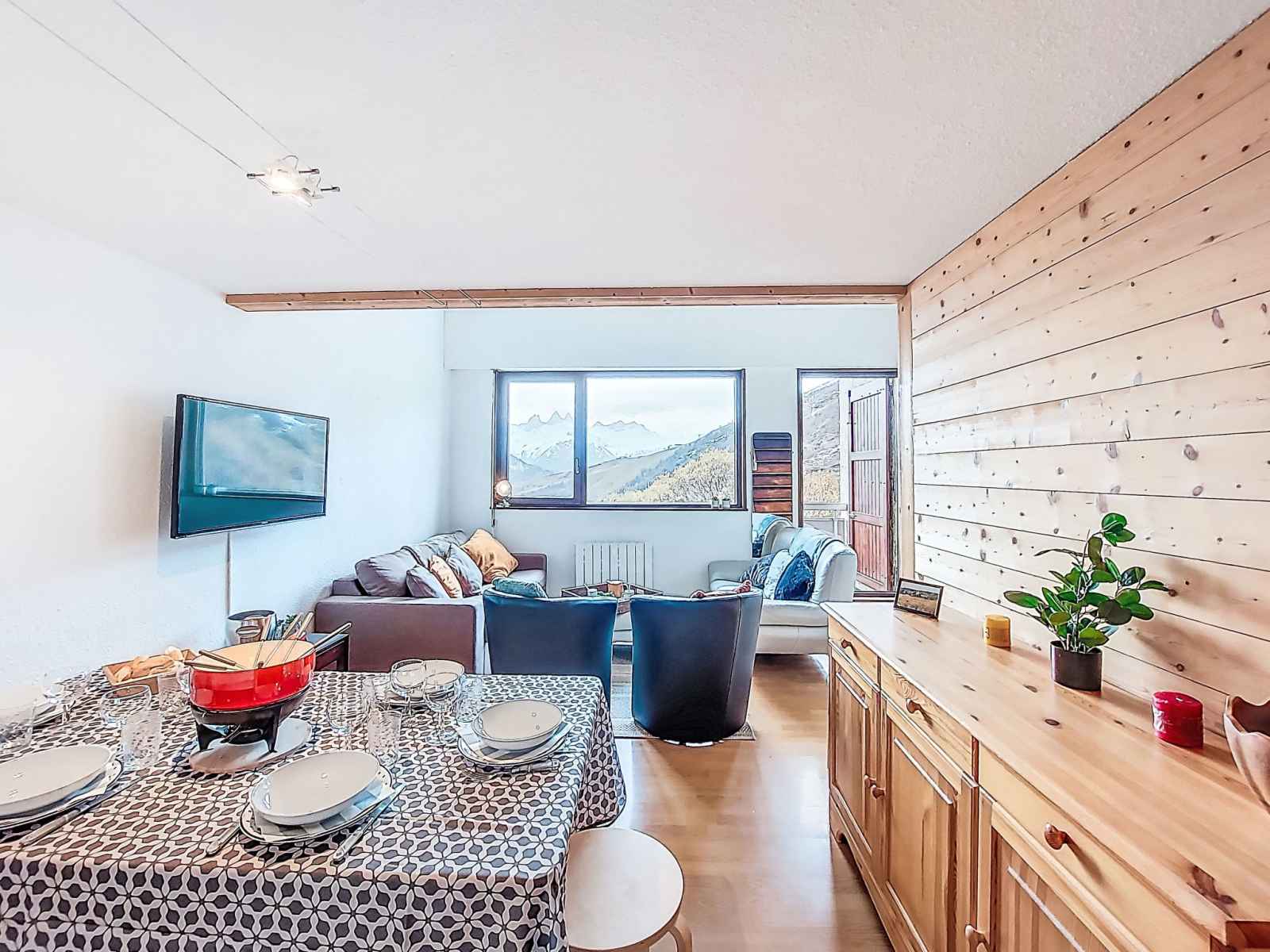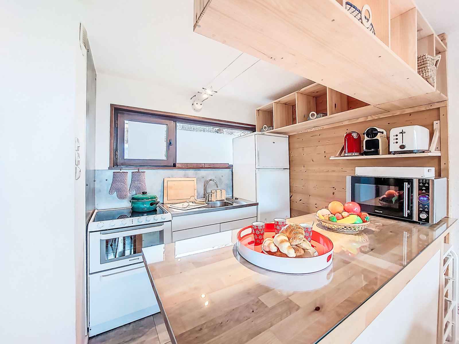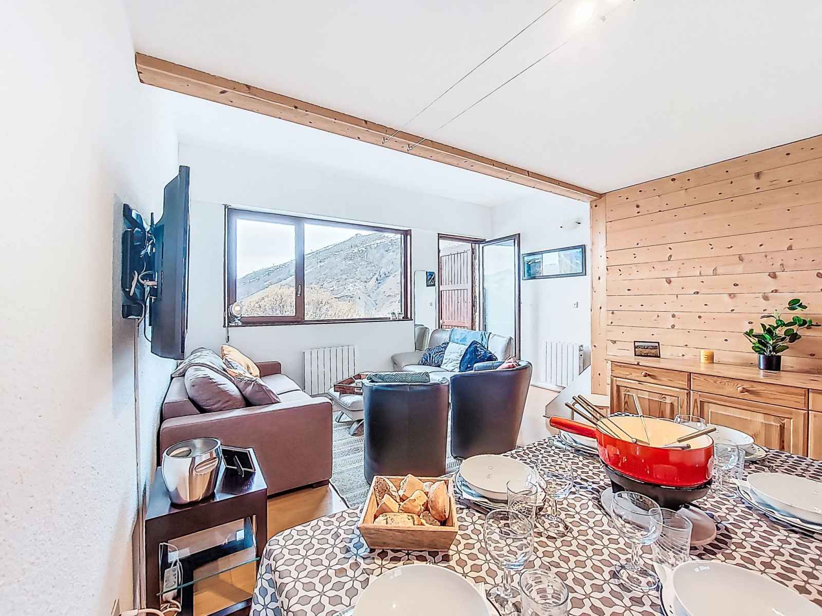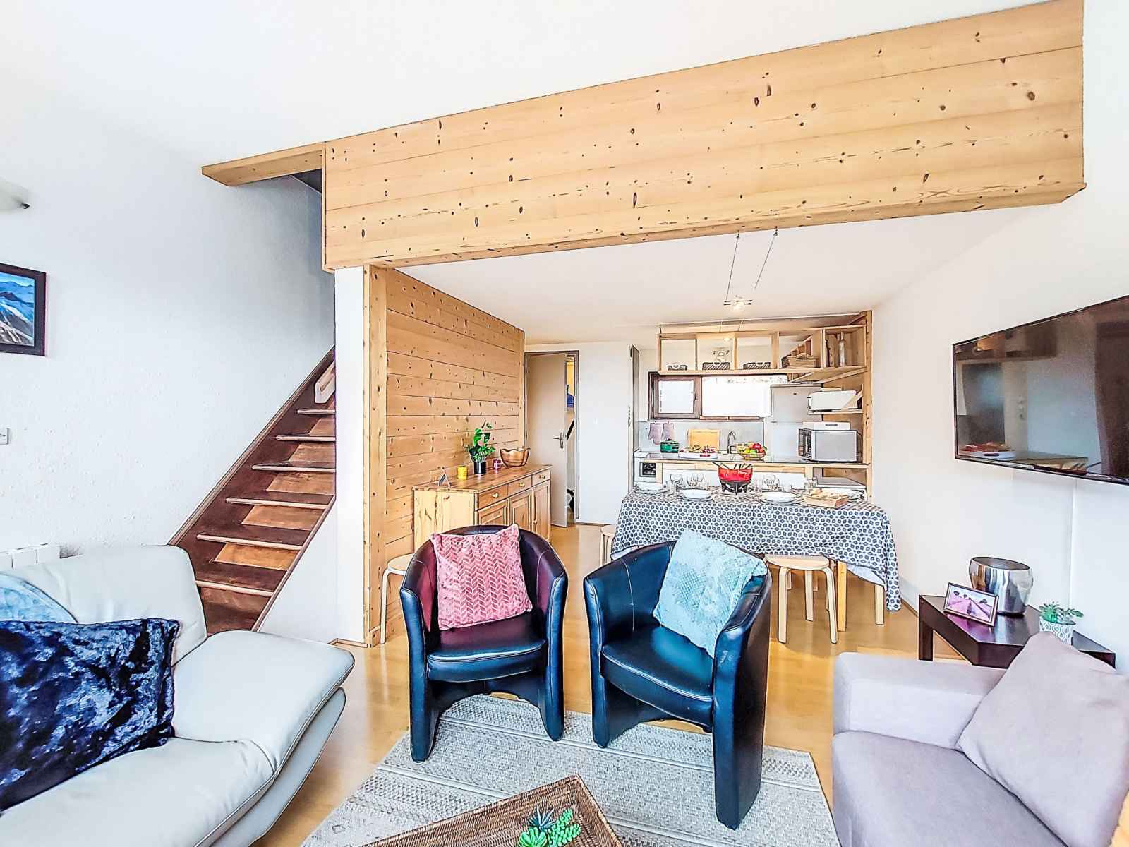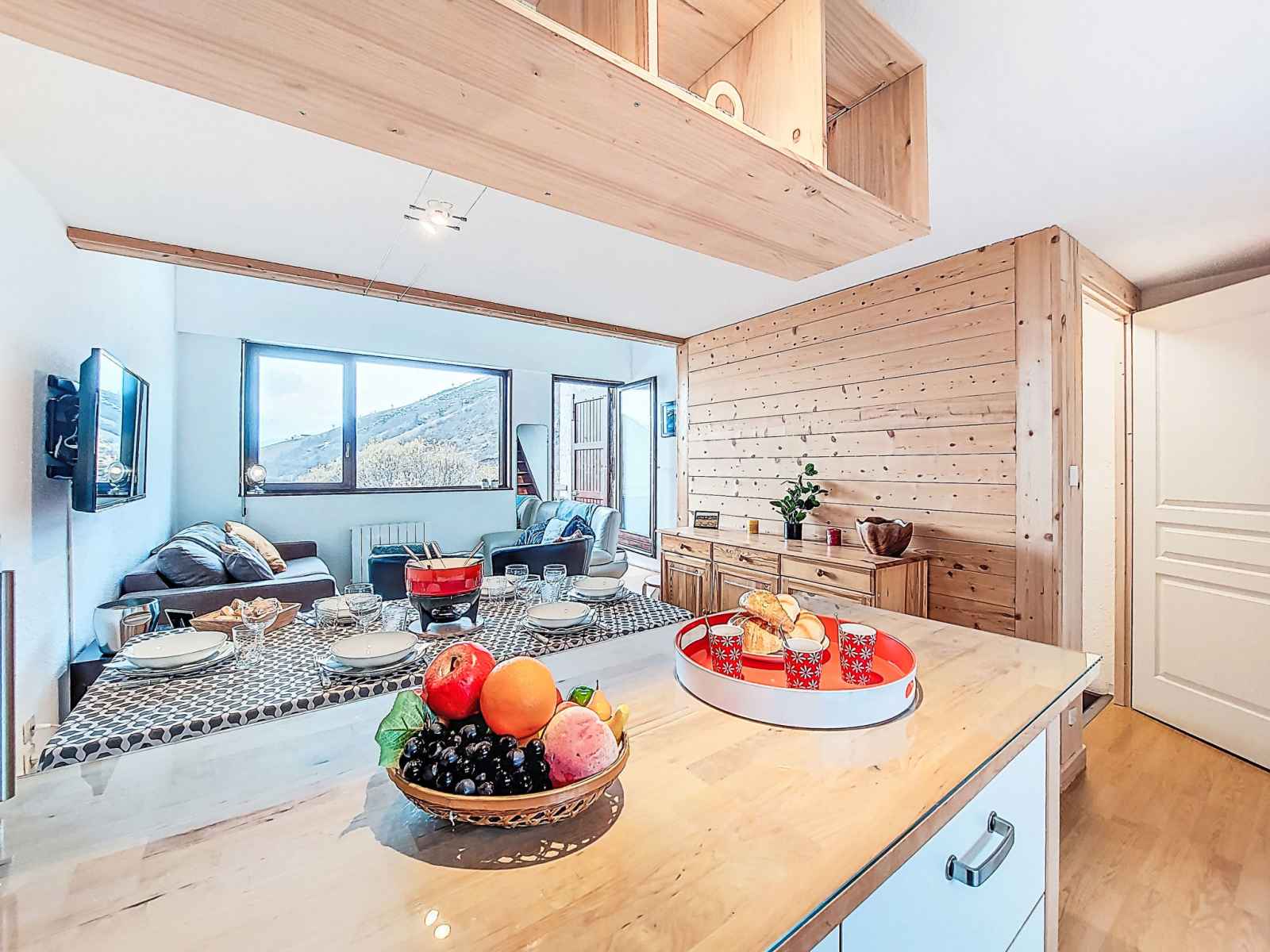 "la combe aux ours", apt 4 pièces 90 m2 sur 3 niveaux au 1er étage, situation sud-est. aménagement confortable: séjour/salle à manger avec tv (écran plat). sortie sur le balcon. cuisine/séjour (four, lave-vaisselle, 4 plaques vitrocéramiques, grille-pain, bouilloire électrique, micro-ondes, congélateur, cafetière électrique, capsules