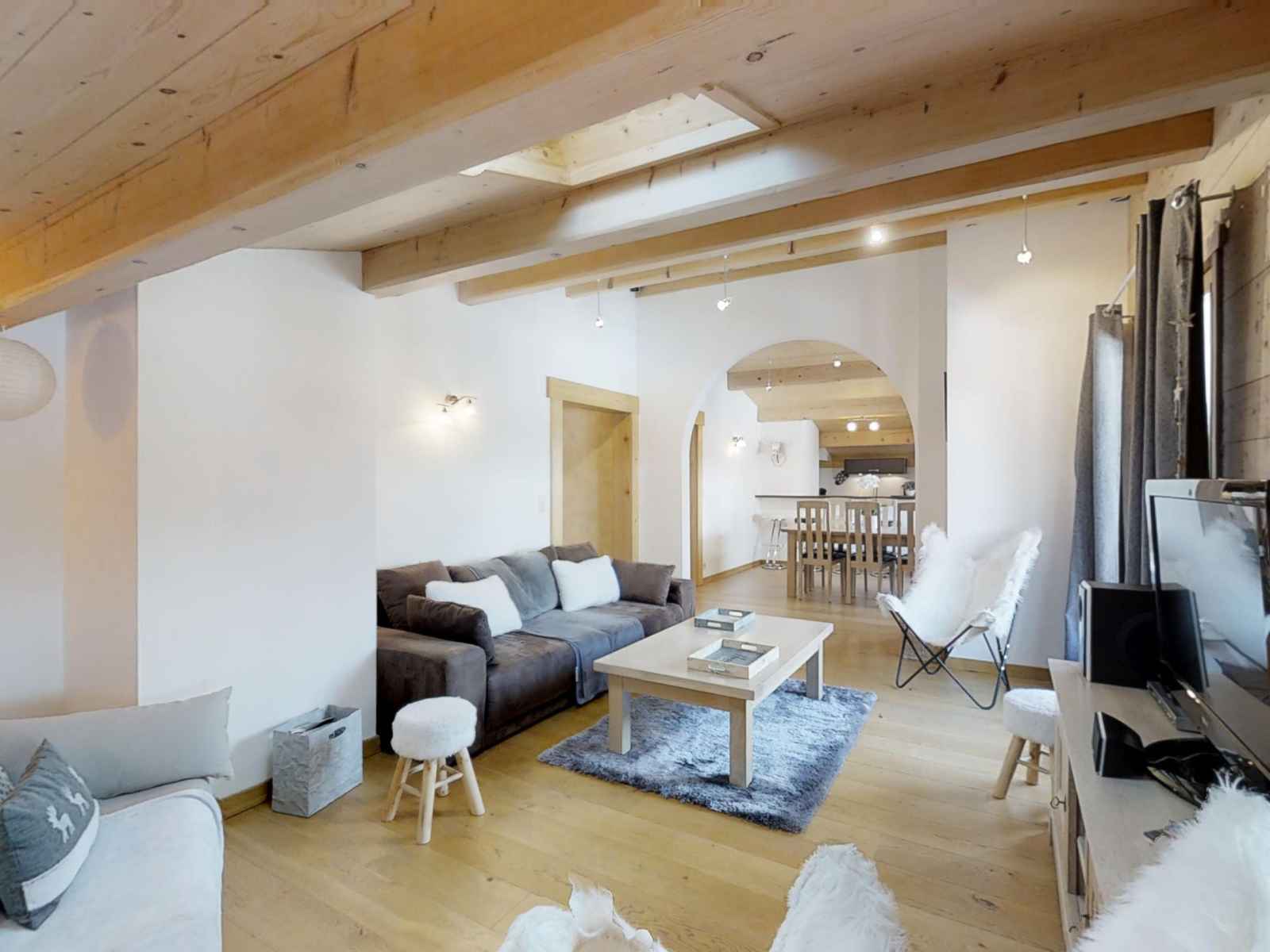 Appartement dans chalet, prêt de vélos électriques, charges comprises, inclus, hors cuisine, vaisselle, poubelles sorties, hébergement rangé (et draps pliés), location à la semaine, wifi, garage / parking couvert, lave linge, lave-vaisselle, balcon / terrasse, jardin, equipement bébé, draps fournis, au moins 1 lit double, balnéothérapie
