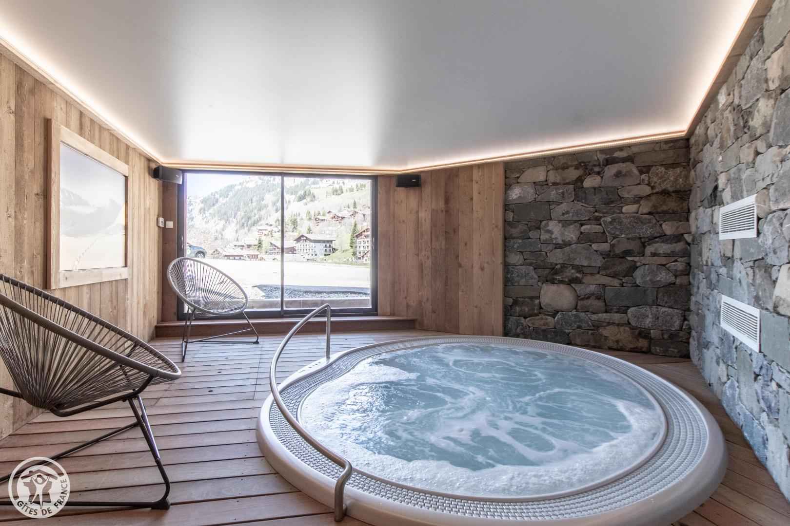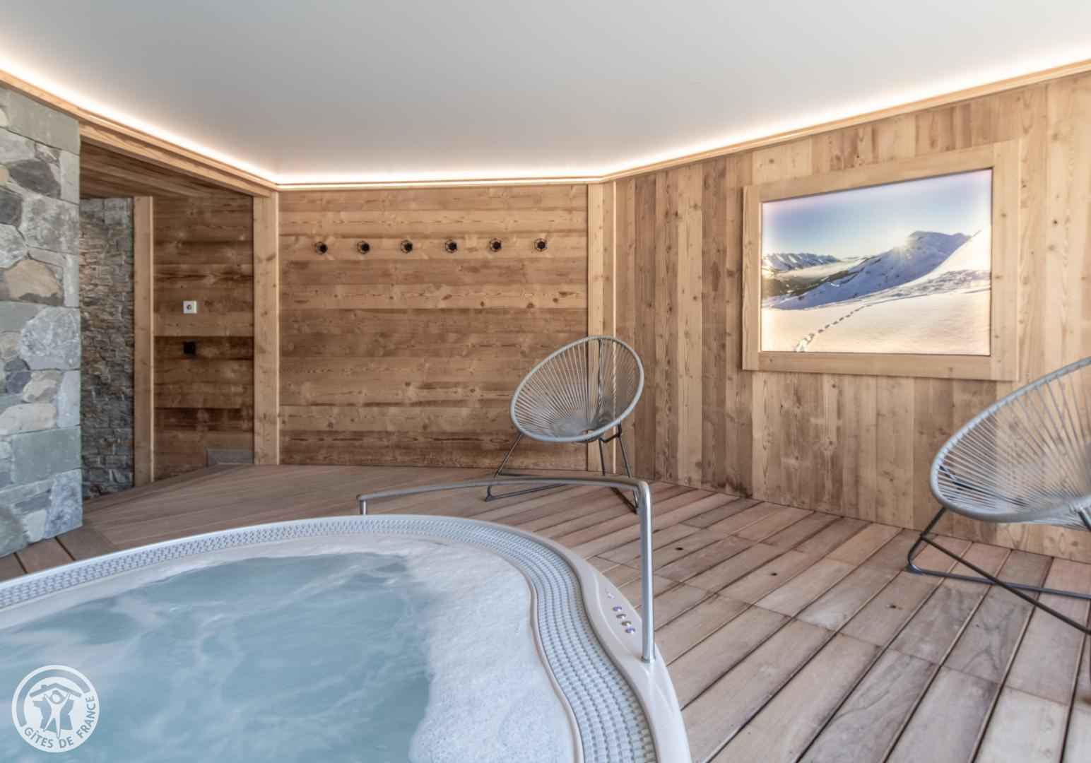 Appartement dans chalet, spa, sauna, commun(s) à la résidence, charges comprises, à effectuer ou à réserver et régler auprès du propriétaire, location à la semaine, wifi, lave linge, lave-vaisselle, balcon / terrasse, exposition sud, equipement bébé, jacuzzi - spa / bain nordique, sauna, draps fournis, au moins 1 lit double, espace spa, sauna, bains à remous