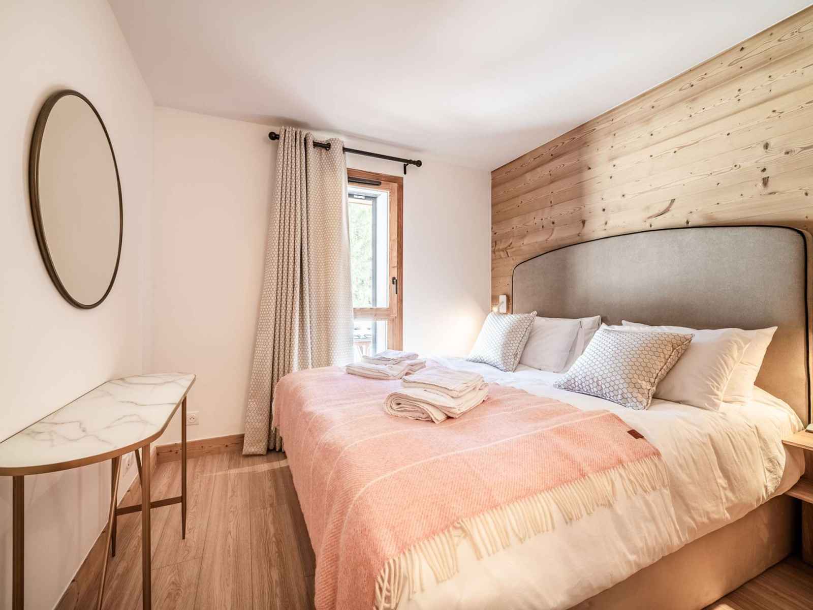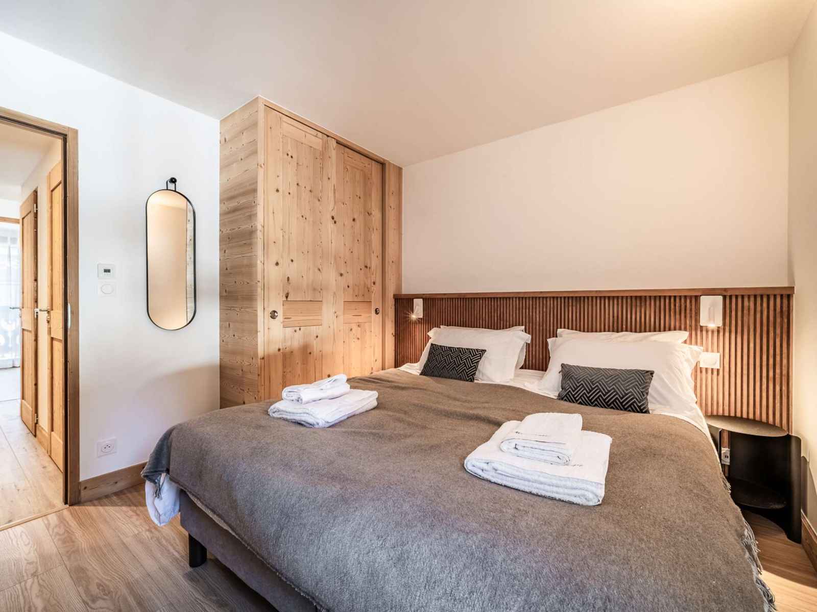 Chalet pascal b101: morzinette est un appartement de 83m² avec trois chambres, deux salles d'eau, au 1er étage (sans ascenseur) d'un bâtiment entièrement neuf et aux prestations hauts de gamme.