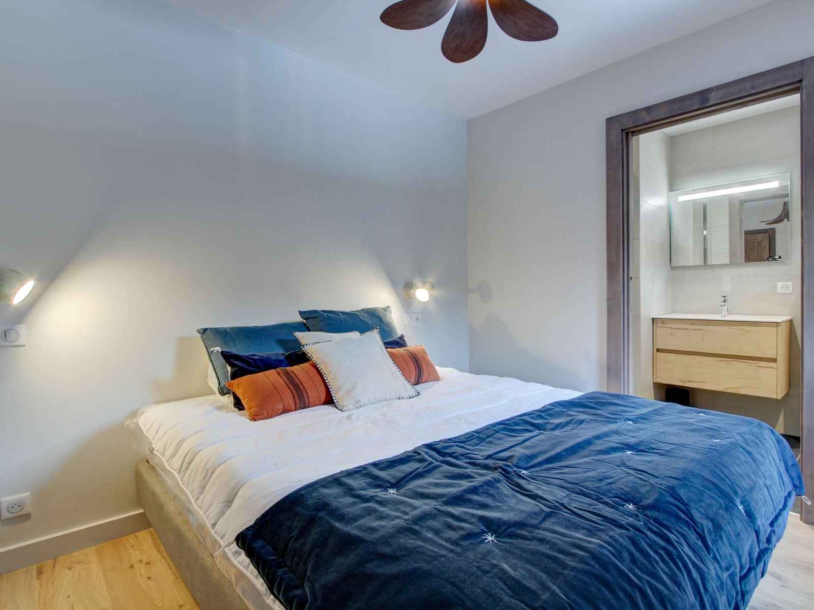- Une chambre avec deux lits simples pouvant être rapprochés en lit double, salle de douche en-suite + WC