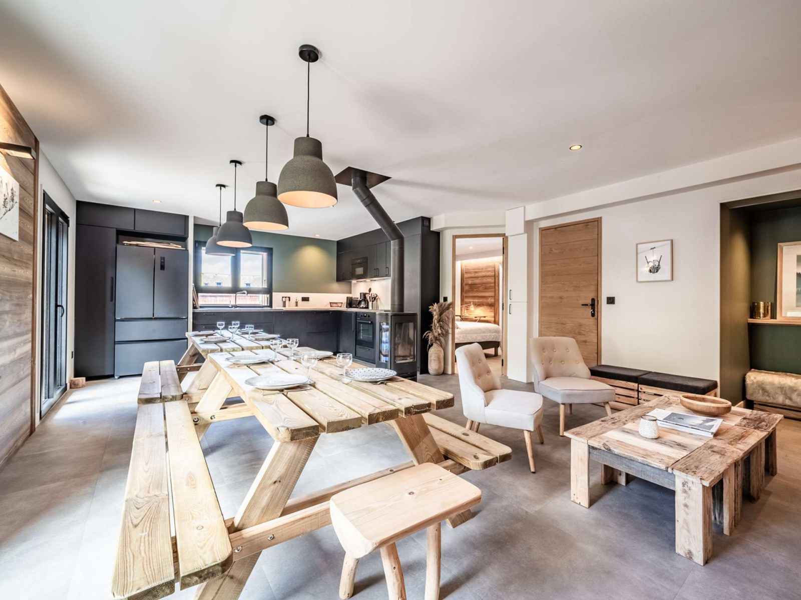 - Pièce à vivre + cuisine ouverte (Magnifique pièce à vivre spacieuse avec cuisine ouverte et équipée. accès au balcon avec vue sur les pistes.