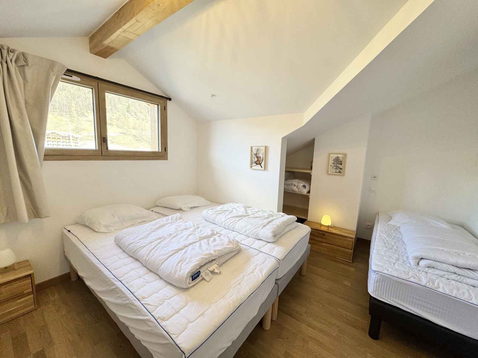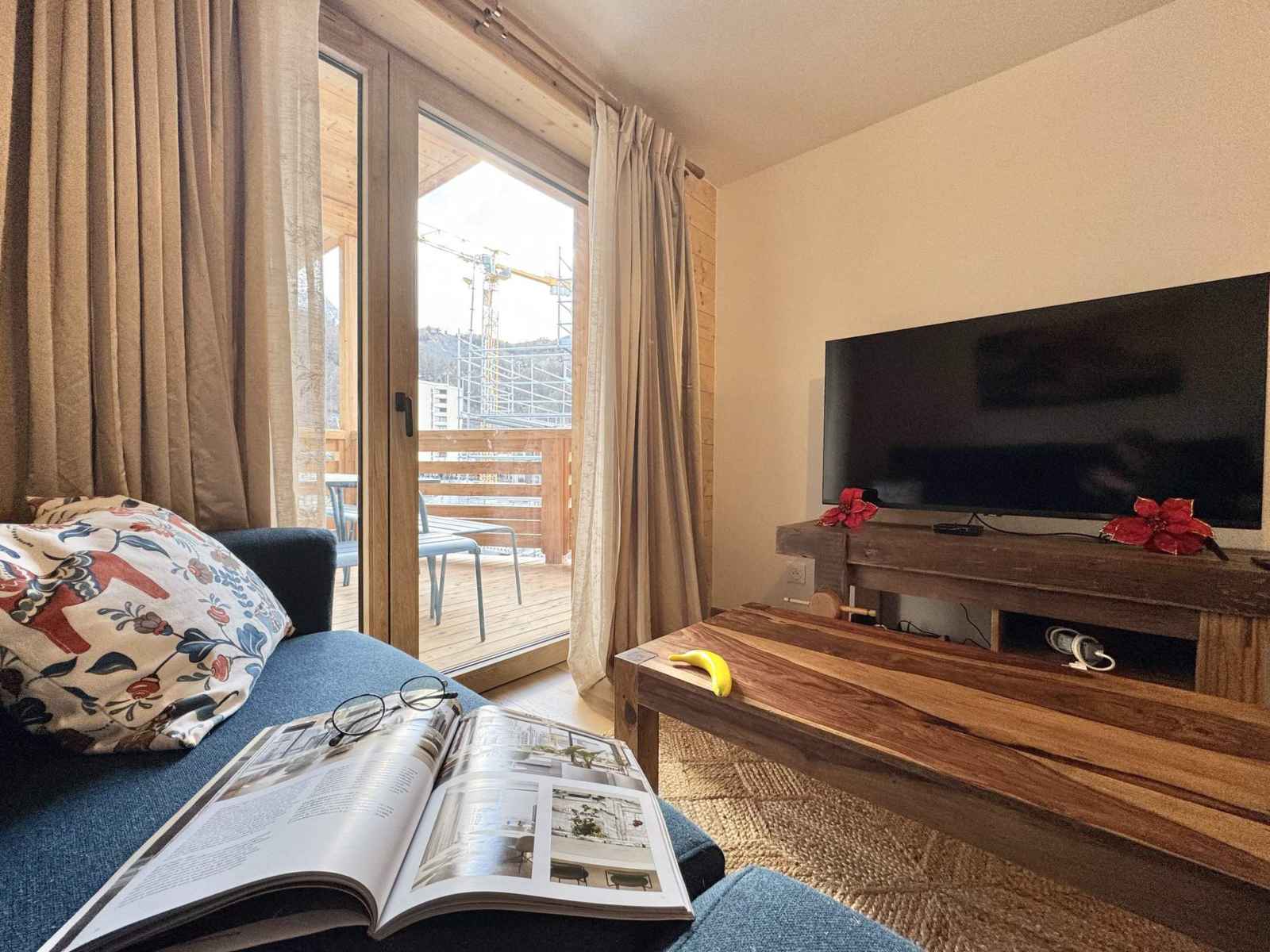 équipée d'un lit superposé et d'un accès à la terrasse, ainsi qu'une autre chambre avec trois lits simples en 90x200 pouvant être rapprochés pour creer un lit double (avec un surmatelas fourni). Le séjour dispose de deux canapés convertibles. L’appartement est entièrement équipé avec une bouilloire, une machine à café Nespresso, un lave-vaisselle, un four traditionnel, un frigo et des plaques de cuisson. Les points forts de cet appartement incluent un grand espace de vie traversant de lumière, une grande terrasse et un balcon traversant, offrant une vue imprenable sur les montagnes environnantes. De plus, une table transformable en billard apportera une touche ludique à vos soirées. L'appartement dispose également d'une place de parking privative, un atout précieux au centre de la station. Deux casiers à skis Un cadre idéal pour profiter des plaisirs de la montagne en toute sérénité ! Ménage de fin de séjour non compris et linge de maison en option (Pack draps et serviettes 16€/personne), nous consulter. Animaux admis. Toutes nos locations sont strictement NON-FUMEUR. Travaux en cours à proximité