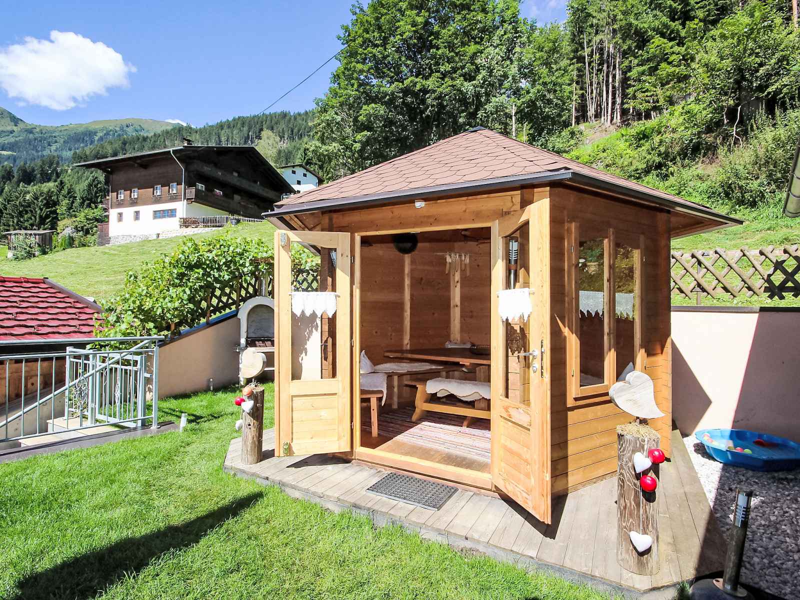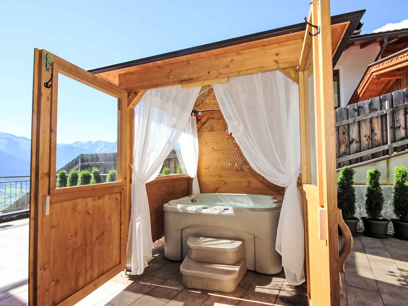 jardin sur plusieurs niveaux entretenu, 100 m2, pré. bain à remous , tonnelle, meubles de jardin. infrastructures de la maison: connexion wifi, sauna, bains de vapeur (hammam), spa, réduit pour bicyclettes, local pour les skis, chauffage central, appareil de séchage de chaussures à ski. accès en voiture jusqu'à la maison. en hiver, merci de prévoir des chaînes. place de parking (couvert, nombre de places limité) près de la maison. supermarché 4.5 km, restaurant 1.3 km, arrêt de bus 4.5 km, gare ferroviaire 4.5 km, piscine 4.5 km. télécabine 6 km. arrêt du ski-bus 10 m. les domaines skiables de renommée sont facilement accessibles: zillertal arena 6 km, ski-zillertal-3000 8 km. veuillez noter: non adapté aux enfants de moins de 6 ans. ski-bus gratuit. d’autres appartements sont également proposés à la location dans cette maison de vacances. horaires d'ouverture de l'espace bien-être de 17h00 à 21h00. bain de vapeur "aqua life", une baignoire en bois de cèdre remplie d'eau de source pure et chauffée à 35 - 40 degrés. 1 serviette de sauna et 1 peignoir par personne sont disponibles gratuitement. le pavillon de jardin est chauffé et peut accueillir 10 personnes. jouets à disposition. magasin de vélos électriques payant. pas de possibilité de recharge pour les voitures électriques à la maison.