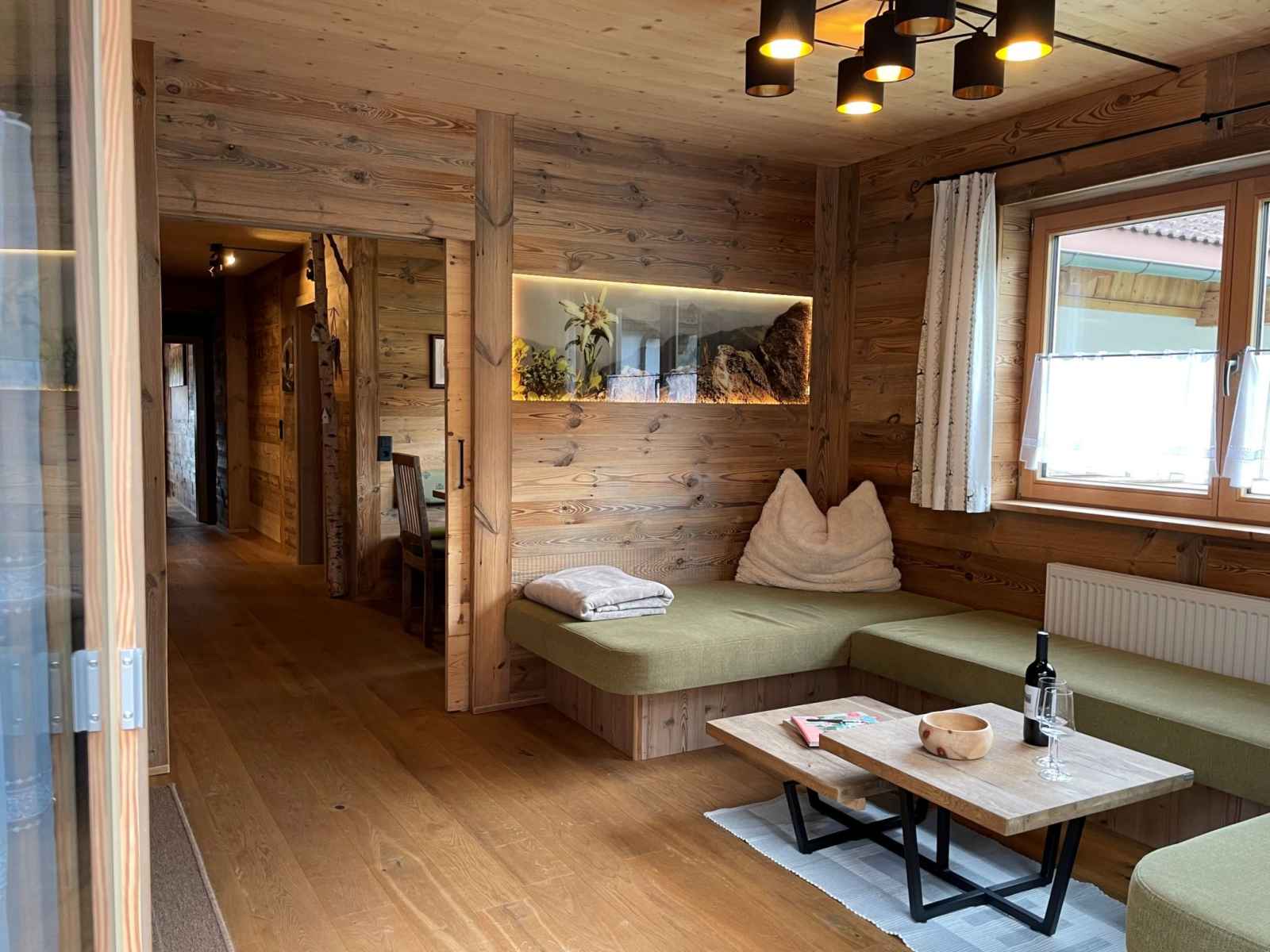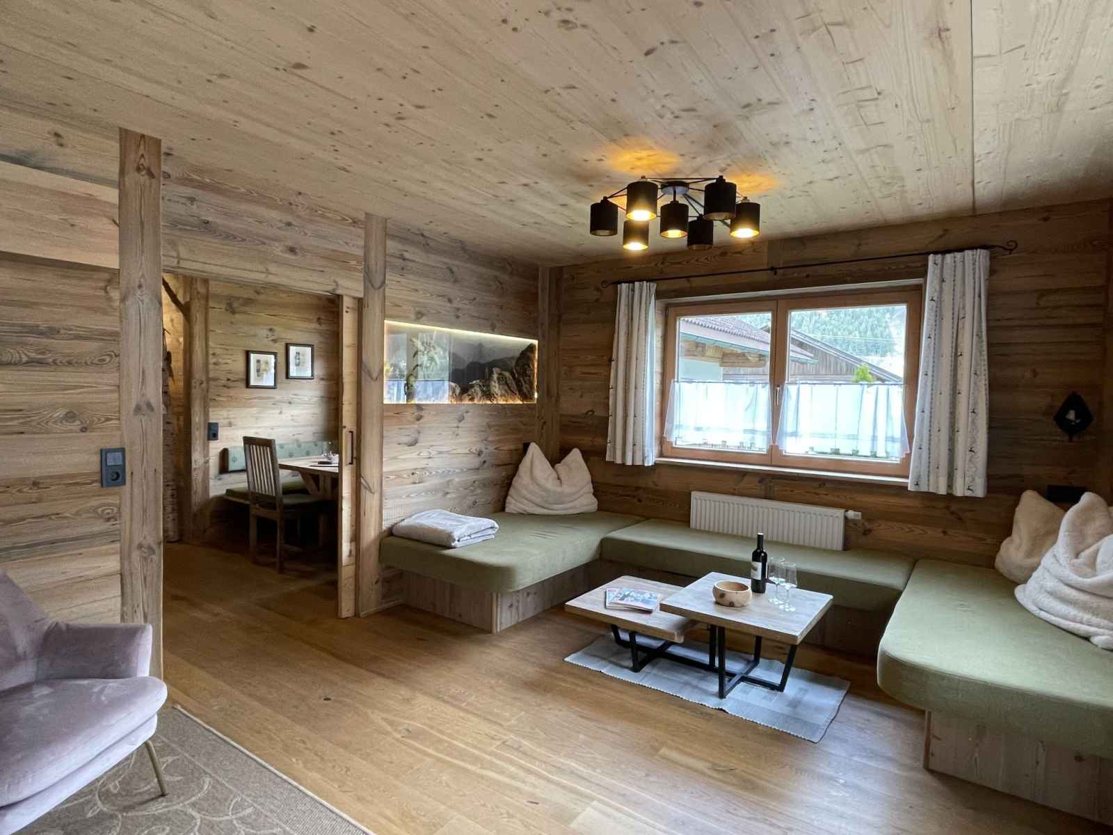 "eberharter", apt 4 pièces 90 m2 au 1er étage. complètement rénové en 2019, aménagement plaisant et avec beaucoup de bois: séjour avec tv (satellite). sortie sur la terrasse. 2 chambres doubles. 1 chambre avec 1 lit. cuisine (four, lave-vaisselle, 4 plaques vitrocéramiques, grille-pain, bouilloire électrique, congélateur, cafetière