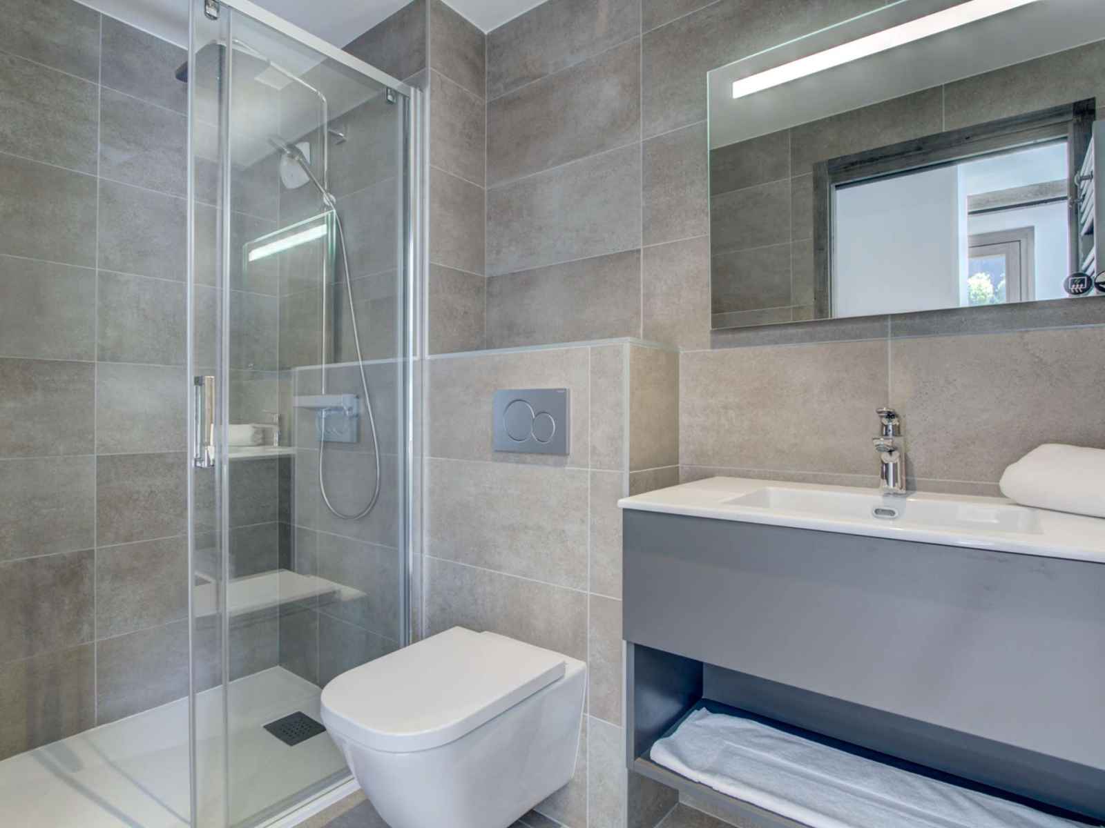 Chambre 2: deux lits simples ou un lit double, rangement, télévision, salle de douche attenante avec douche et WC