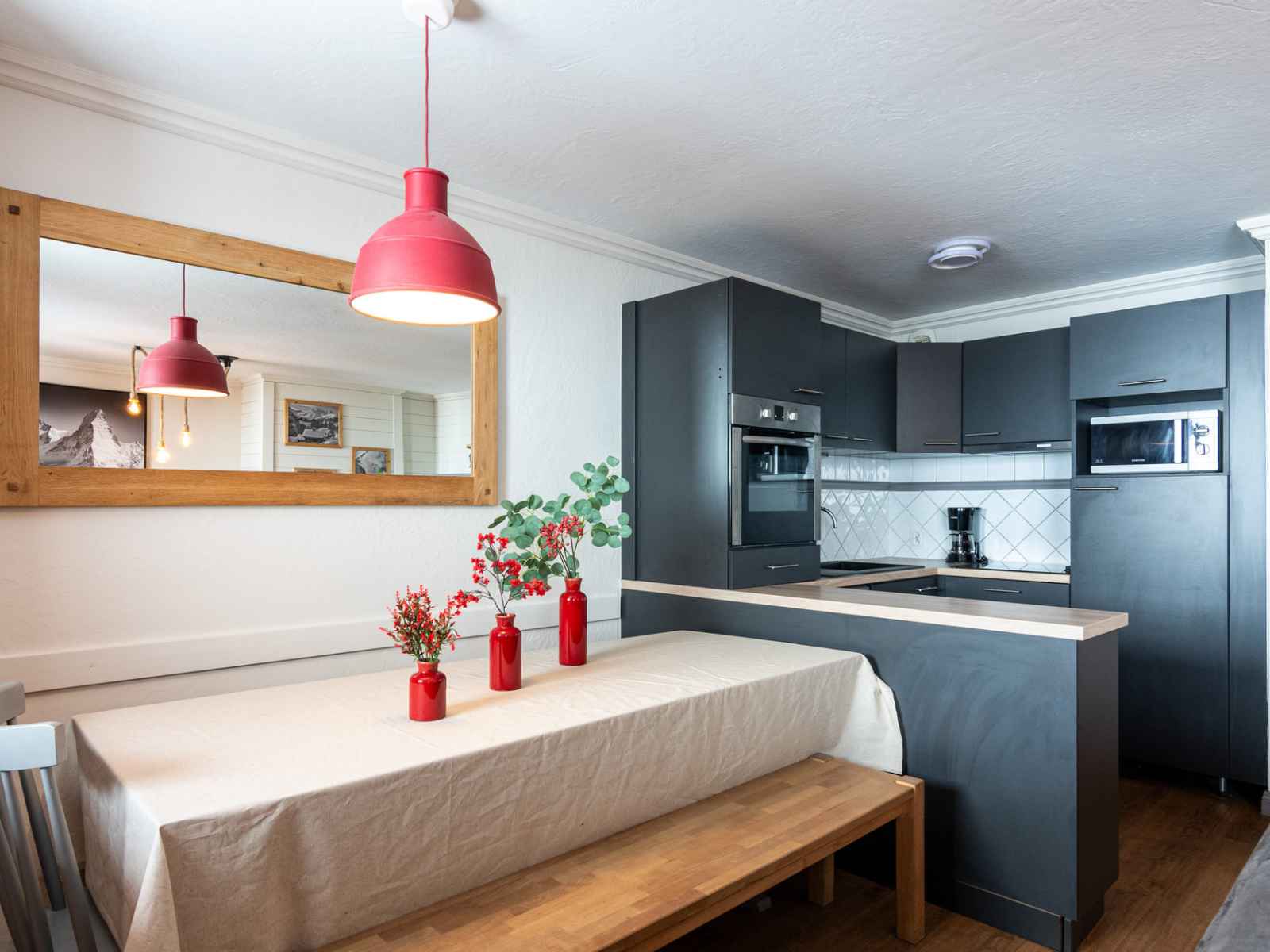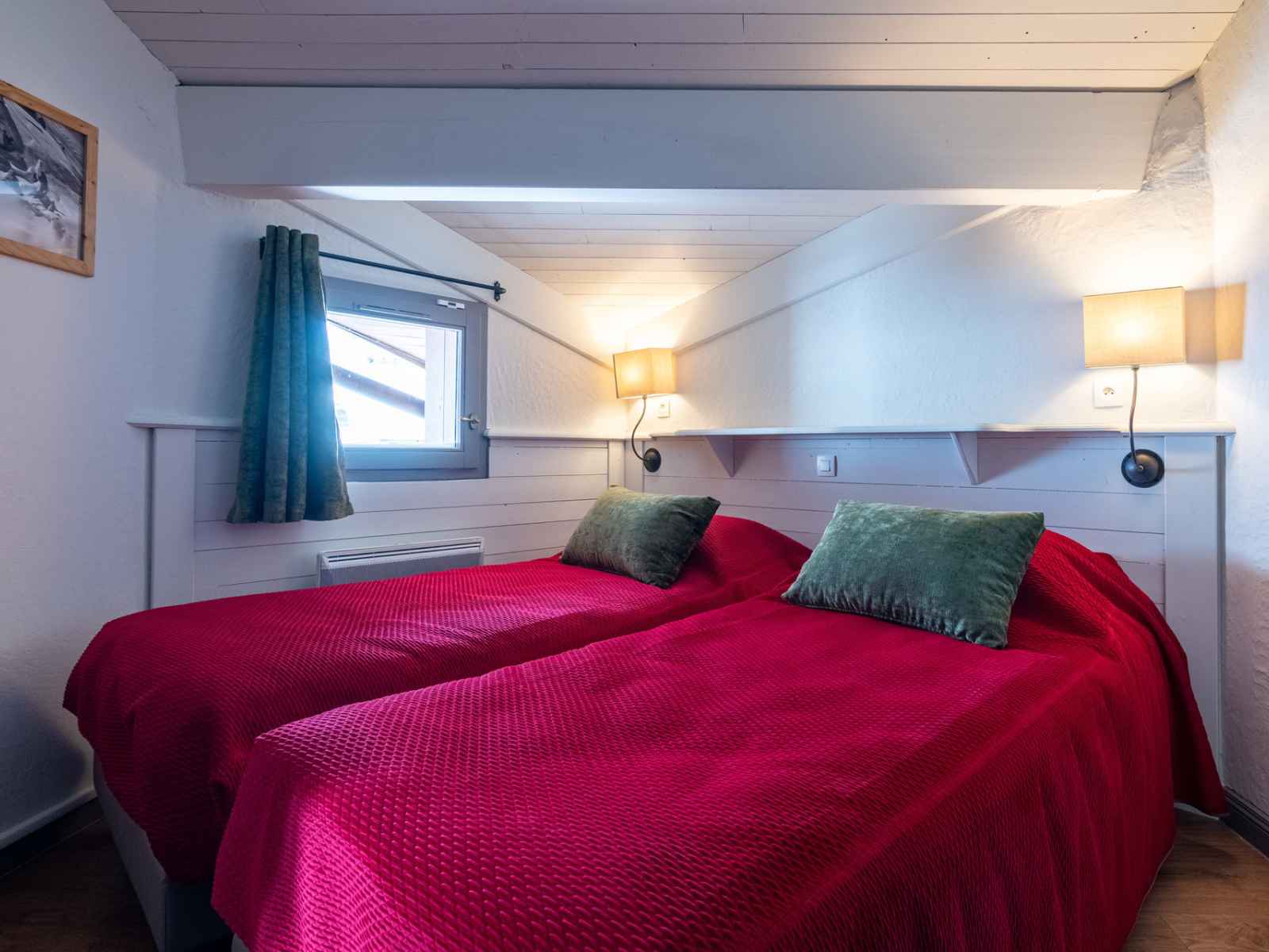 montagnes et donne accès à un espace bien-être avec piscine intérieure chauffée, sauna et hammam. L’espace de vie lumineux comprend un salon avec TV, canapé et une cuisine ouverte entièrement équipée (four, micro-ondes, lave-vaisselle, Nespresso…). La décoration allie bois naturel et ambiance contemporaine pour une atmosphère élégante et montagnarde. Agencement Rez-de-chaussée Séjour avec balcon Chambre 1 : lit double, salle d’eau privative + WC Chambre 2 : lit double, salle d’eau WC indépendant Etage Chambre 3 : deux lits simples, salle d’eau Chambre 4 : deux lits simples, salle d’eau WC indépendant Prestations -Casier à skis privatif avec sèche-chaussures, pour un confort optimal au retour des pistes. Lits faits à l'arrivée serviettes incluses kit de salle de bain Occitane Accès à l’espace bien-être de la résidence, comprenant une piscine intérieure chauffée, sauna et hammam – parfait pour se détendre et récupérer après une journée en altitude. Ambiance boisée et chaleureuse, nombreux rangements, Wi-Fi dans la résidence. Un appartement parfaitement situé, alliant fonctionnalité, détente et prestations de qualité, pour un séjour réussi à Val Thorens.