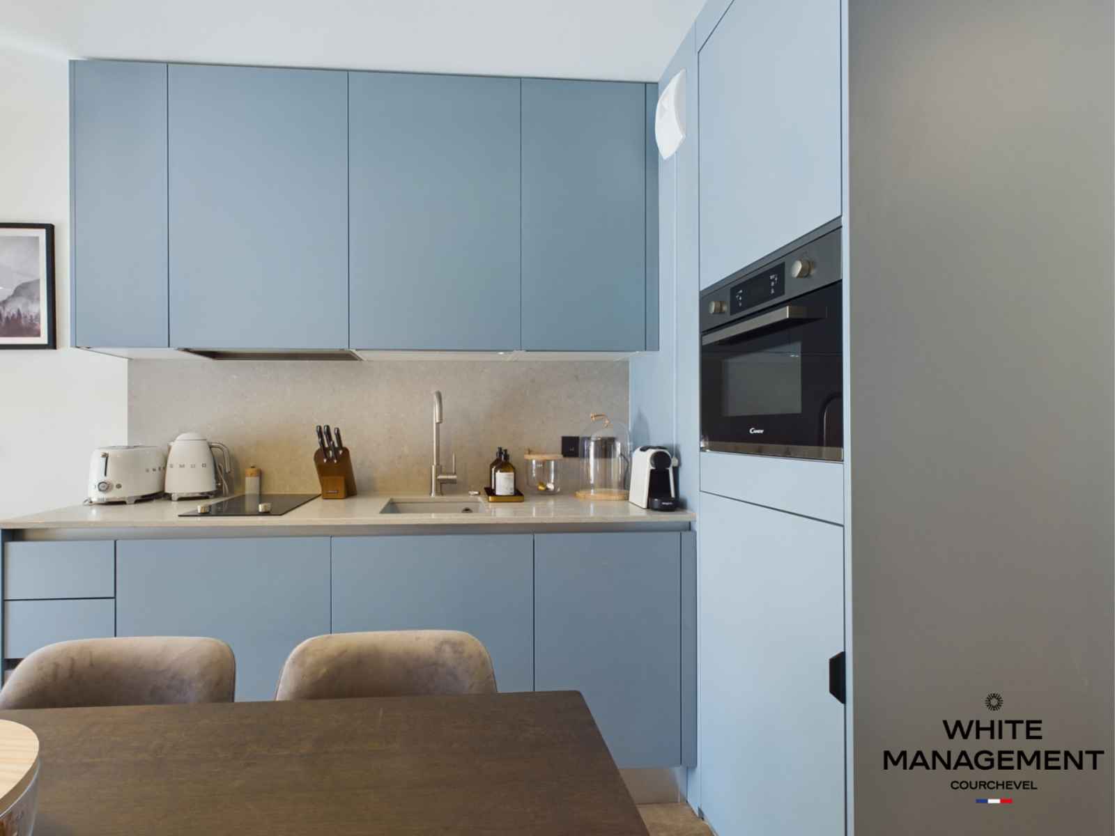 vous apprécierez sa grande pièce à vivre, bénéficiant d’une hauteur sous plafond similaire à celle d’un chalet privé et donnant sur un superbe balcon équipé de 26 m² sous les toits. skieur ou non,