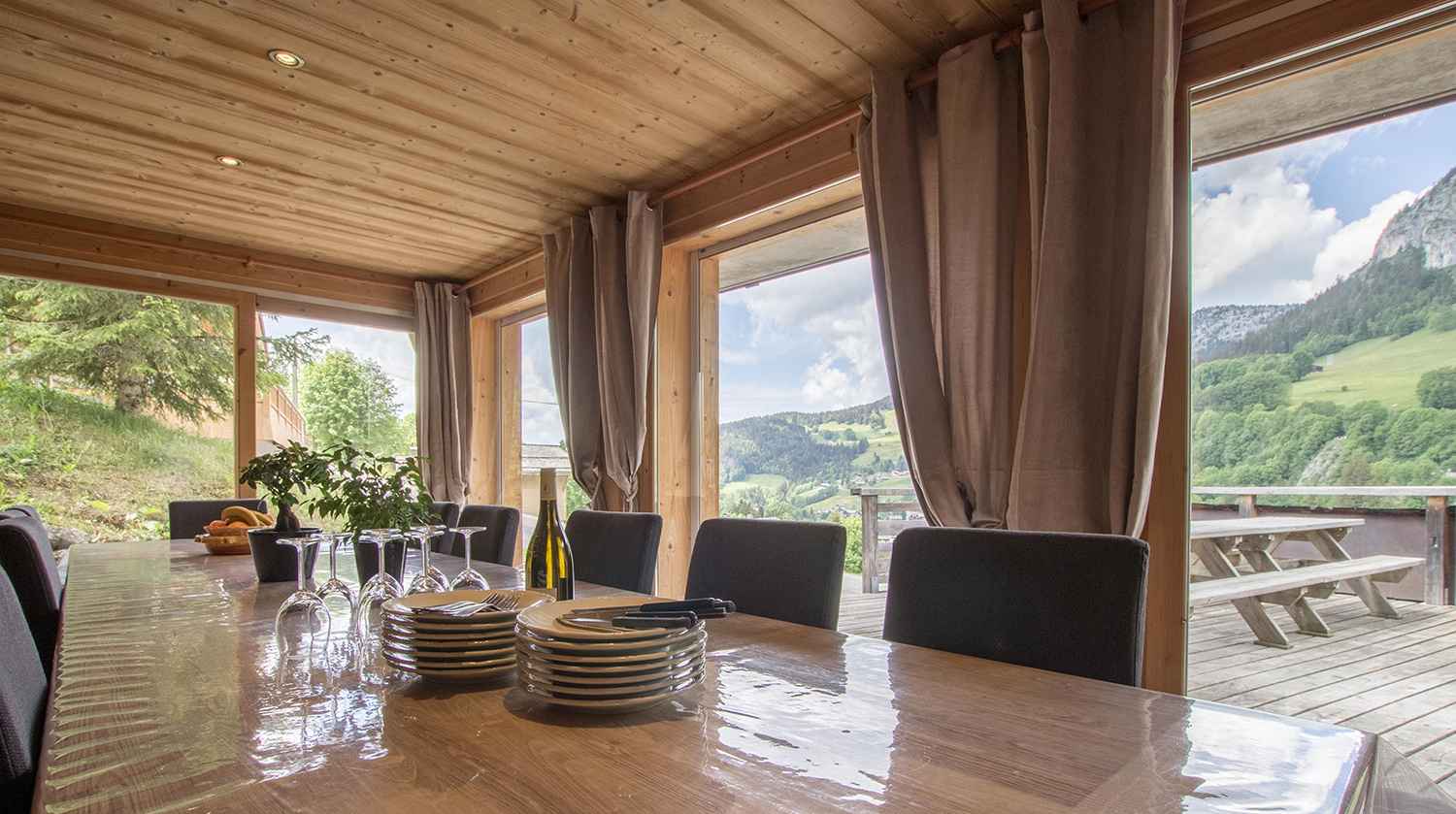 Appartement dans chalet, charges comprises, à effectuer ou à réserver et régler auprès du propriétaire, location à la semaine, wifi, garage / parking couvert, lave linge, lave-vaisselle, balcon / terrasse, exposition sud, cheminée / poêle, animaux admis, equipement bébé, draps fournis, au moins 1 lit double