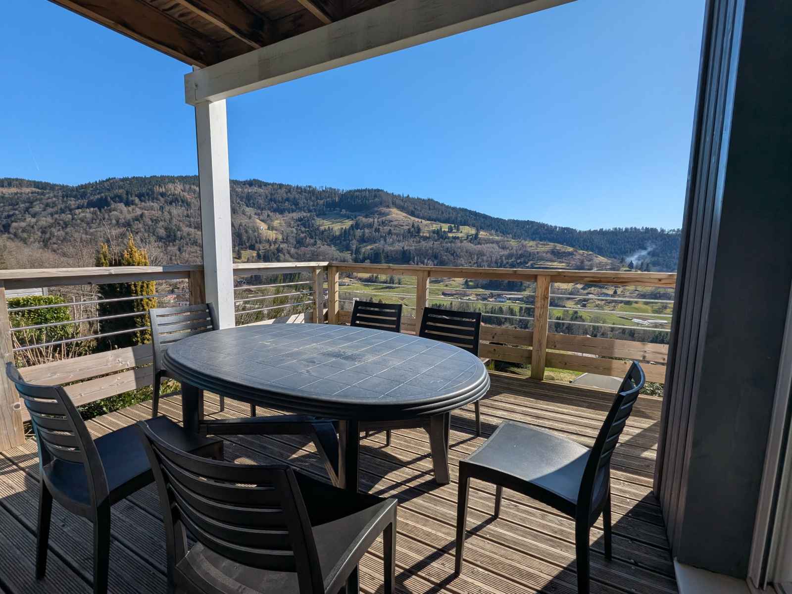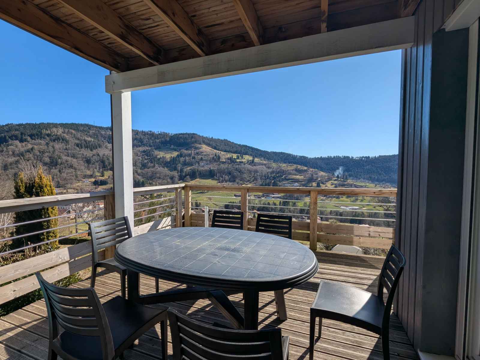 ski de La Bresse-Hohneck (à 14 km – 20 min en voiture) : domaine skiable renommé pour le ski alpin, le snowboard et les randonnées en raquettes. - Lac de Gérardmer (à 17 km – 25 min en voiture) : baignade, activités nautiques et balades en bord de lac. - Route des Crêtes (à 15 km – 20 min en voiture) : superbe itinéraire panoramique idéal pour les randonnées et les points de vue exceptionnels. - Cascade de Tendon (à 22 km – 30 min en voiture) : l’une des plus belles cascades des Vosges, parfaite pour une excursion nature. - Parc naturel régional des Ballons des Vosges : faune, flore et paysages spectaculaires à explorer. Activités culturelles et sportives : - Randonnées et VTT : de nombreux sentiers balisés accessibles depuis Basse-sur-le-Rupt pour découvrir les paysages vosgiens. - Bol d’Air Aventure (à 12 km – 15 min en voiture) : parc d’activités avec tyroliennes géantes, saut à l’élastique et parcours accrobranche. - Musée du Bois et de la Forêt (à 8 km – 10 min en voiture) : découverte des savoir-faire traditionnels vosgiens. - Confiserie Bressaude (à 12 km – 15 min en voiture) : visite gourmande pour observer la fabrication artisanale des bonbons des Vosges. - Marchés et gastronomie locale : dégustez les spécialités régionales comme la tofaille, la tarte aux brimbelles et le munster fermier. Offrez-vous une pause nature et détente en séjournant au Gîte au calme, un lieu parfait pour se ressourcer et explorer les merveilles des Vosges. Réservez dès maintenant cette maison pour 6 personnes et profitez d’un cadre exceptionnel avec vue sur la vallée ! Maison à ossature bois sur 2 niveaux. Elle est composée en rez-de-jardin : - d'une pièce à vivre : Espace repas pouvant accueillir jusqu’à 6 personnes. Cuisine équipée : Réfrigérateur, compartiment congélation, plaque de cuisson 3 feux induction, four, four à micro-ondes, lave-vaisselle, cafetière filtre et Nespresso, appareil à raclette, plancha électrique, Cookeo, mixeur plongeant. Salon avec TV, canapé, fauteuils et table basse. - d'une suite avec un lit 160/200, avec salle d'eau privative : Douche 90/120, une vasque, sèche-serviette électrique, sèche-cheveux. - WC indépendants. - d'un vestibule. - d'une buanderie avec lave-linge. - d'une terrasse avec salon de jardin pour 6 personnes, parasol et barbecue. À l'étage : - deux chambres avec un lit 140/190 et un lit 90/190. - d'une salle d'eau : Douche 90/90, une vasque, WC, sèche-serviette chauffant. Parking privatif devant le logement. Inclus dans le tarif : Le chauffage et l'électricité. En option : Le linge de lit et de toilette pour le séjour, le ménage de fin de séjour.