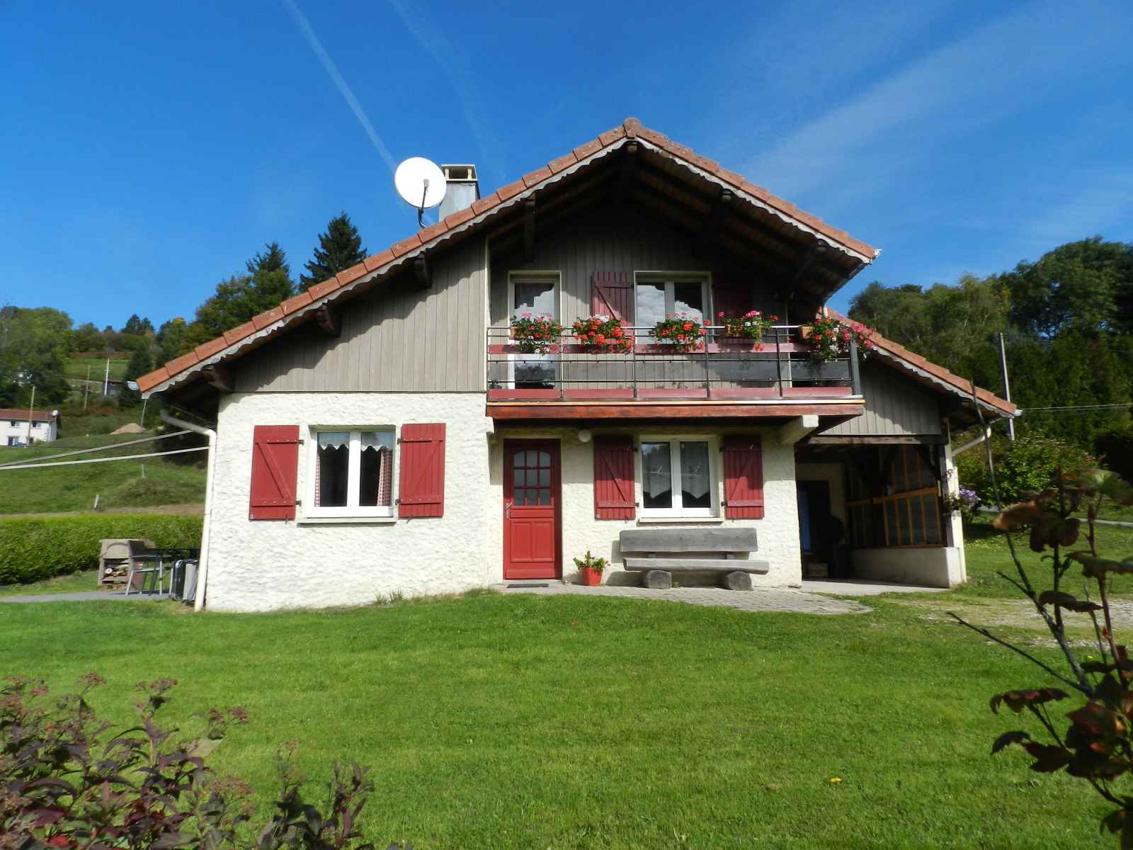 Maison individuelle de style chalet, confortable et bien équipée, située en montagne. a proximité de l'exploitation agricole familiale, labellisée bienvenue à la ferme. maison individuelle style chalet. gîte de ferme.