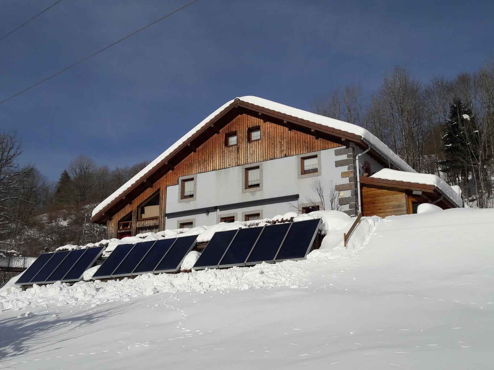 comblés : depuis le gîte, partez directement sur les nombreux sentiers de randonnée accessibles à pied ou en VTT. Entre forêts, prairies et points de vue panoramiques, chaque sortie est une immersion au cœur des paysages vosgiens. En hiver, les stations de ski de La Bresse-Hohneck, Lispach et Gérardmer-La Mauselaine se trouvent à proximité pour profiter des plaisirs de la neige. En été, les lacs de Gérardmer, Longemer, la base de loisirs de Saulxures... offrent baignade et activités nautiques pour tous. Ce gîte labellisé Valeurs Parc naturel régional garantit un accueil chaleureux et respectueux de l’environnement, idéal pour celles et ceux qui souhaitent allier confort, convivialité et tourisme durable. Les grands espaces intérieurs comme extérieurs sont parfaitement pensés pour partager des moments uniques, que ce soit autour d’un repas, au retour d’une randonnée ou lors d’une soirée conviviale. À proximité, découvrez également les richesses du territoire : marchés de producteurs, fermes-auberges, artisanat vosgien, route des Crêtes, cascades et panoramas emblématiques comme le Hohneck, le Grand Ballon... Que vous soyez passionné de randonnée, de sports de plein air, de ski ou simplement en quête de repos, ce gîte de grande capacité est le point de départ idéal pour explorer les Vosges et profiter de vacances inoubliables en toute saison. Rez-de-chaussée - Entrée avec un bel escalier accédant à l'étage - Cuisine professionnelle équipée, piano 7 feux Gaz et 2 fours, lave vaisselle, réfrigérateur. 2 Cafetières filtre et un percolateur, micro onde... - Salle à manger composée d'une table de 10 personnes, une 4 personnes et une table pour 8 personnes. - Salon avec canapés et table basse. - 2 wc A l'étage : - Chambre 1, 3 lits 90/190. Salle d'eau (Douche et lavabo) - Chambre 2, 2 lits 90/190. Salle d'eau (Douche et lavabo) - Chambre 3, 3 lits 90/190. Salle d'eau (Douche et lavabo) - Chambre 4, 1 lit 140/190. Salle d'eau (Douche et lavabo) - Chambre 5, 2 lits 90/190. Salle d'eau (Douche et lavabo) - Coin nuit 6, 1 lit 90/190. - Chambre 7, 2 lits 90/190. Salle d'eau (Douche et lavabo) 2 wc Aux beaux jours vous apprécierez les extérieurs et de vous détendre en terrasse avec en fond un poster géant sur la montagne vosgienne. Place de parking à proximité du gîte. Électricité et chauffage inclus. Panneaux solaires pour la production d'eau chaude. Draps, serviettes de toilette et ménage fin de séjour en option. Lit parapluie sur demande. Gîte ouvert toute l'année