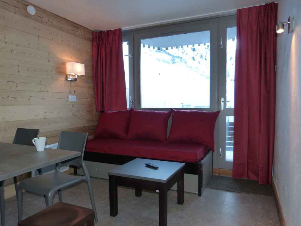 skiable d'Aime 2000. Le séjour comprend 1 canapé lit clic clac pour 2 personnes, une table pour 4 personnes et une télévision écran plat. Pour votre confort, une cabine avec 2 lits superposés est à votre disposition. La cuisine, située dans l'entrée, est équipée d'un four mixte, de 2 plaques vitrocéramiques, d'un réfrigérateur top et d'un lave vaisselle. La salle de bains dispose d'une baignoire et les WC ne sont pas séparés. Services : Animaux tolérés. (supplément de 30€) Commerces dans la résidence. Résidence skis aux pieds et casier à skis. Equipé de couettes Linge de lit et de toilette en coton et ménage de fin de séjour en supplément. Matériel bébé sur demande, réservation conseillée.