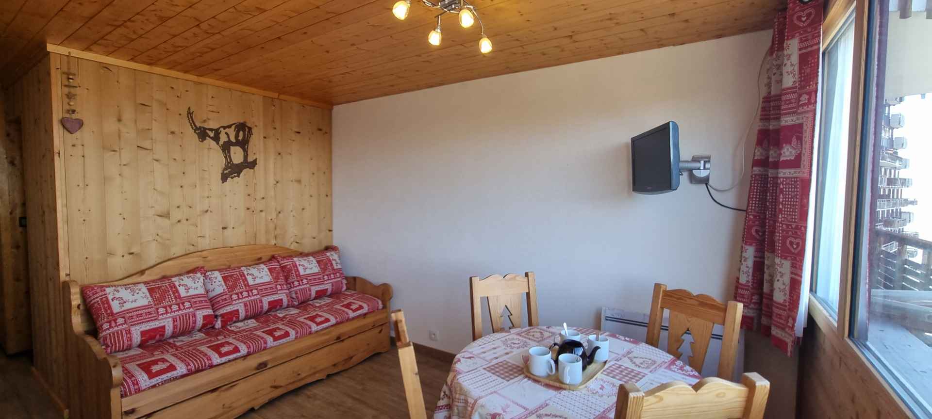 ce studio rénové se trouve au niveau "o" du paquebot des neiges et est accessible par l'ascenseur "chamois". il se compose d'une cuisine séparée, d'un séjour et d'une salle de bains avec wc. son
