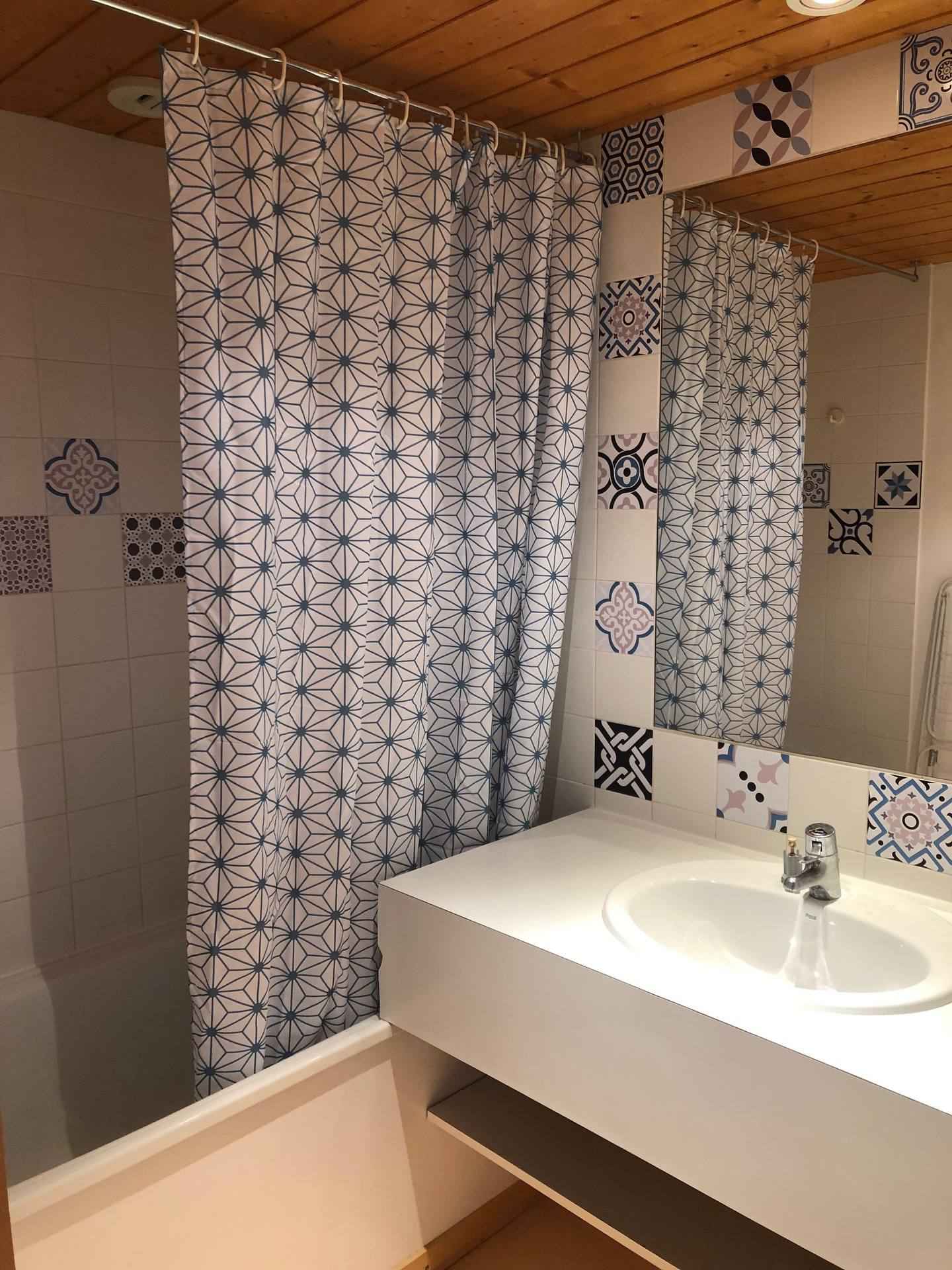 séjour comprend 2 couchages pour 1 personne, 1 canapé lit rapido pour 2 personnes, une table avec 4 tabourets et une télévision écran. La cuisine ouverte est équipée d'un mini four, un four micro-ondes, de 2 plaques électriques, d'un réfrigérateur top et d'un lave vaisselle. Un appareil à raclette est également à votre disposition. La salle de bains dispose d'une baignoire et les WC sont séparés. Services : Animaux non tolérés. Commerces dans la résidence. Résidence skis aux pieds et casier à skis. Equipé de couettes Linge de lit et de toilette en coton et ménage de fin de séjour en supplément. 1 couette pour 2 personnes disponible. Matériel bébé sur demande, réservation conseillée.
