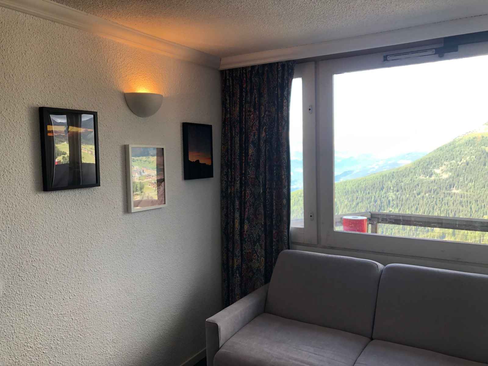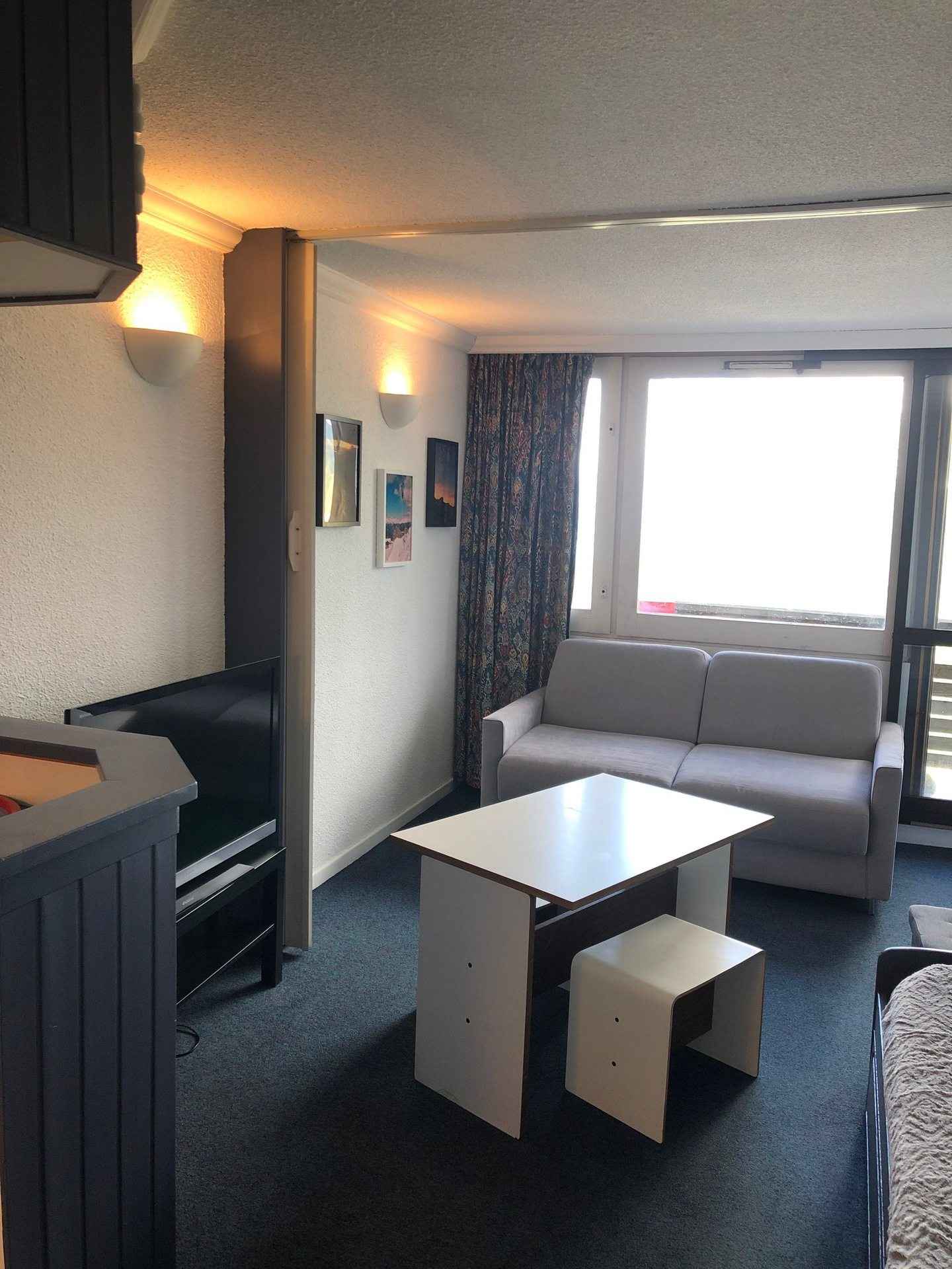ce studio se trouve au niveau "f" du paquebot des neiges et est accessible par l'ascenseur "etoile". il se compose d'une cuisine ouverte sur le séjour, d'une salle de bains et d'un wc indépendant. son balcon exposé nord offre une belle vue sur le mont blanc.