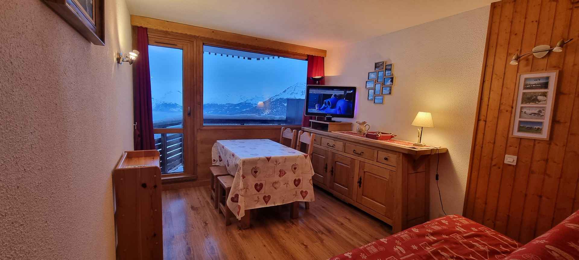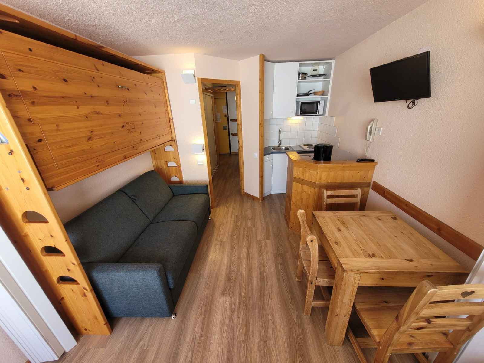 ce studio se trouve au niveau "e" du paquebot des neiges et est accessible par l'ascenseur "etoile". il se compose d'une cuisine ouverte sur le séjour, d'une salle de bains et d'un wc indépendant. son balcon exposé sud offre une jolie vue sur les pistes.