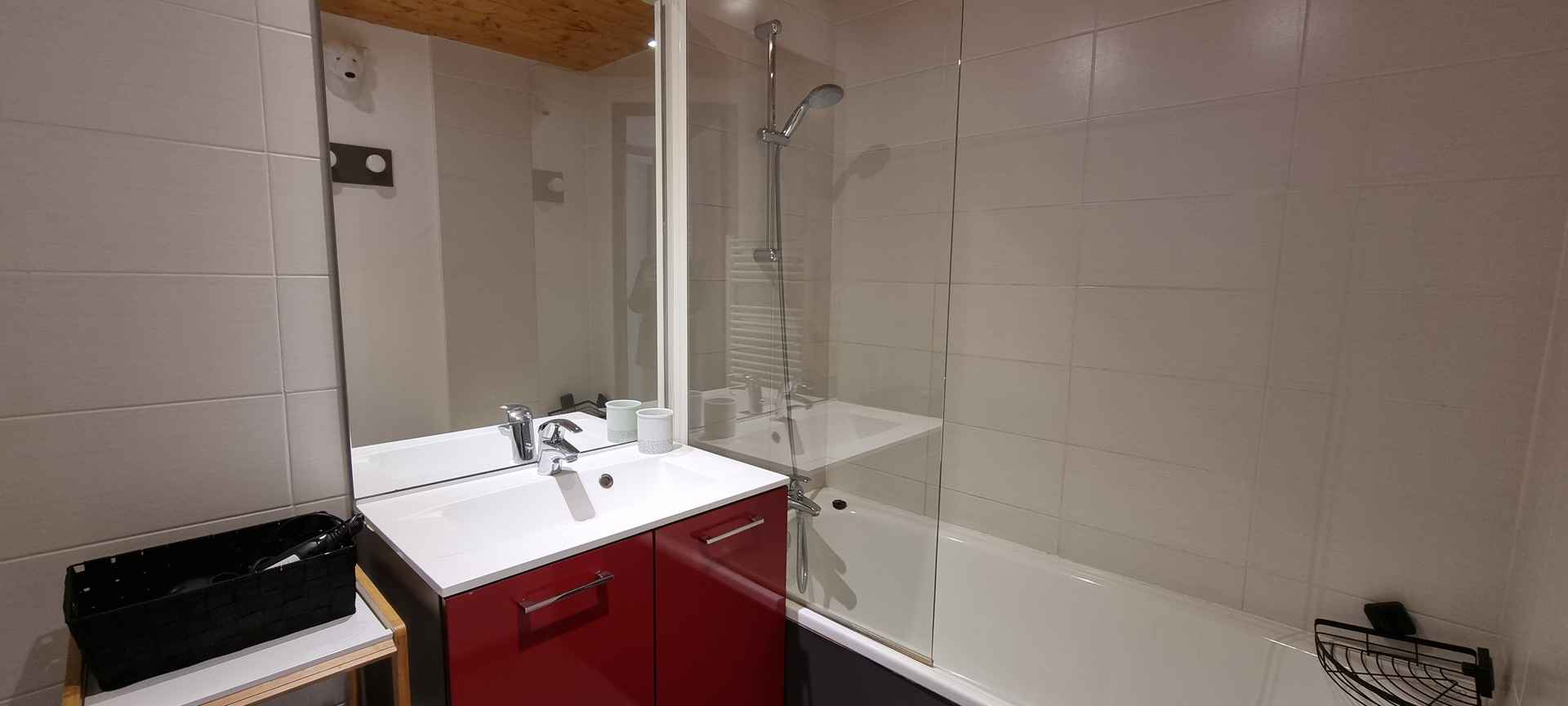 personne, 1 lit gigogne et 1 lit rabattable. Pour votre confort, une télévision écran plat est à disposition. La cuisine est équipée d'un four mixte, de 2 plaques électriques, d'un réfrigérateur top et d'un lave-vaisselle. La salle de bains dispose d'une baignoire ; les WC sont indépendants. Services : Animaux tolérés - supplément 30 € Commerces dans la résidence. Résidence skis aux pieds et casier à skis. Equipé de couvertures Linge de lit et de toilette en coton et ménage de fin de séjour en supplément. Matériel bébé sur demande, réservation conseillée.