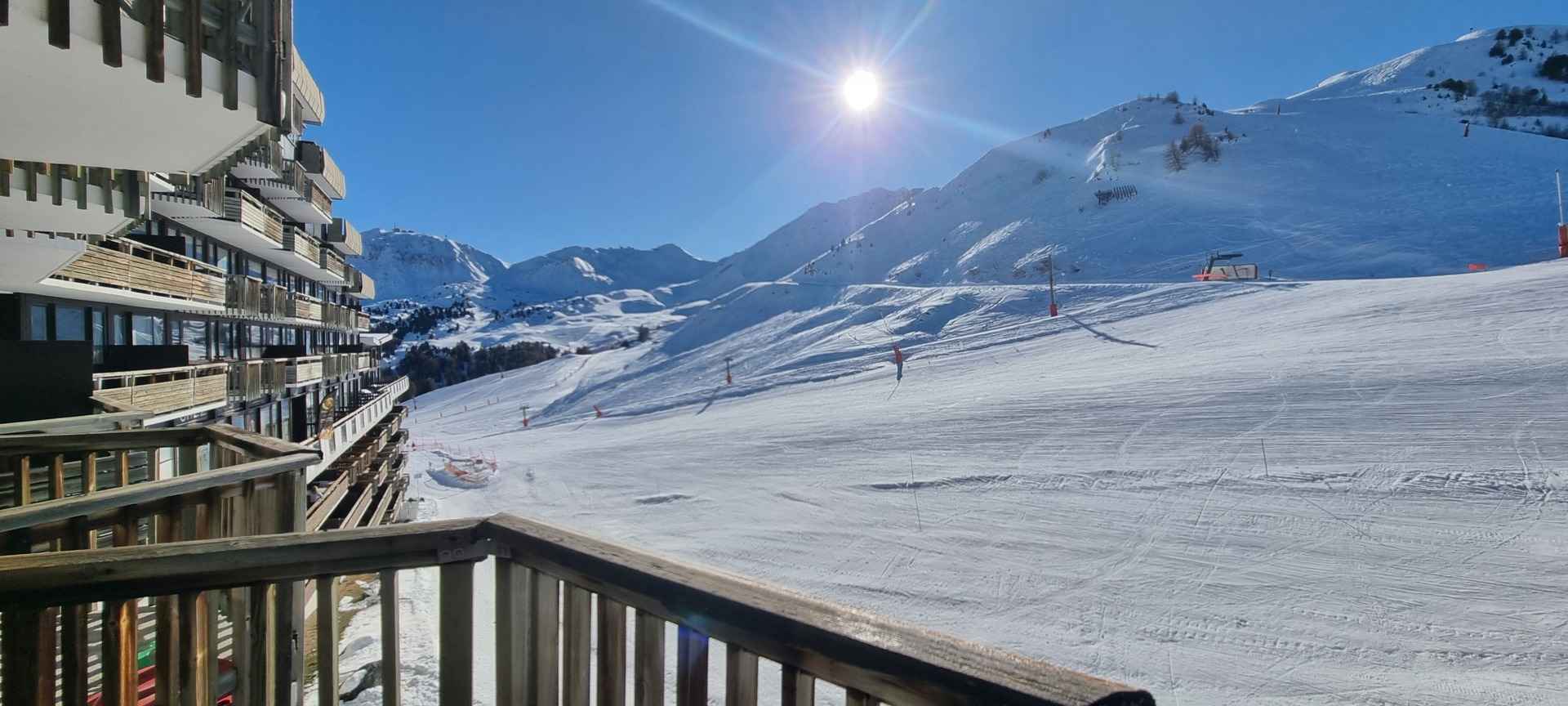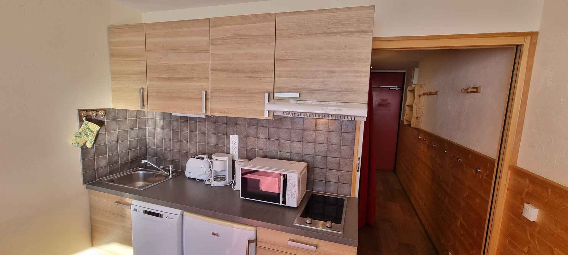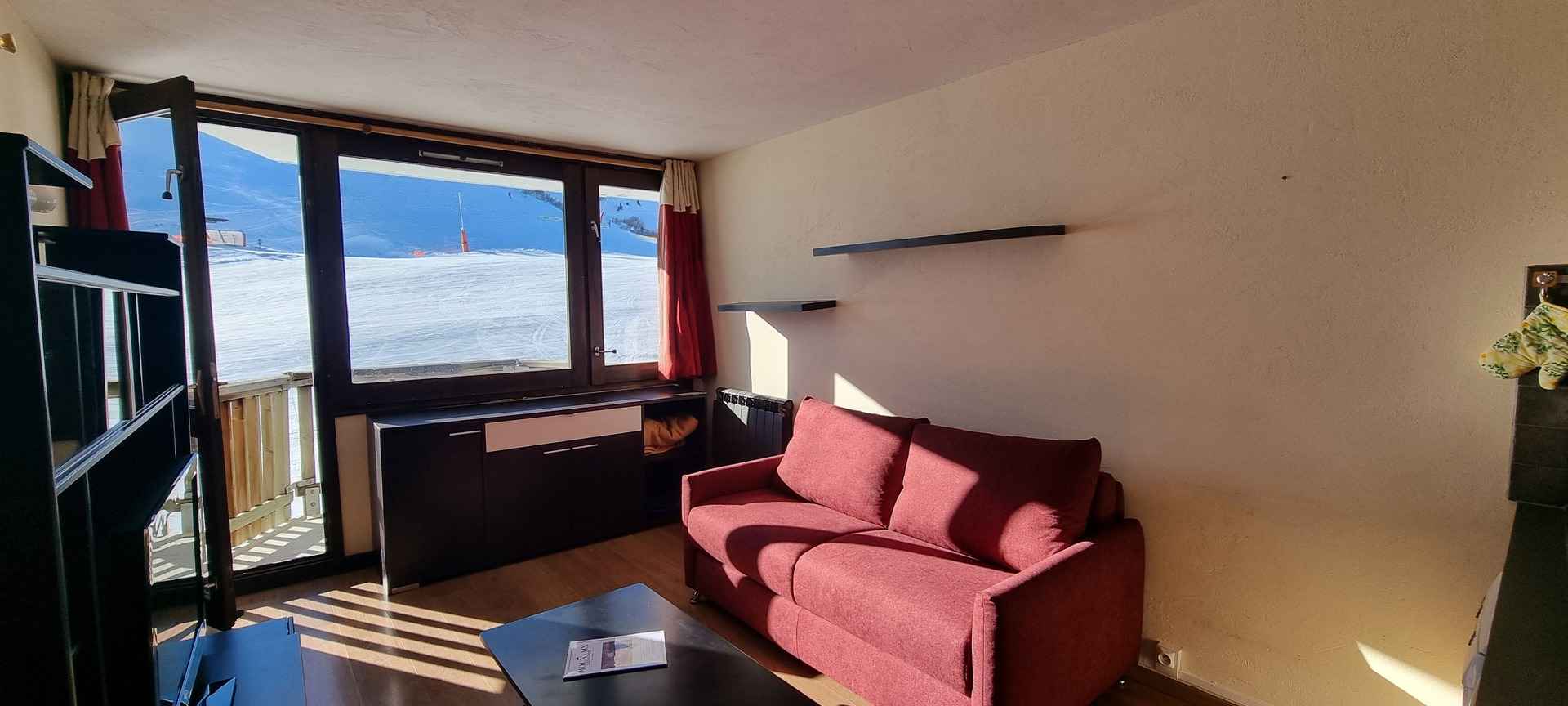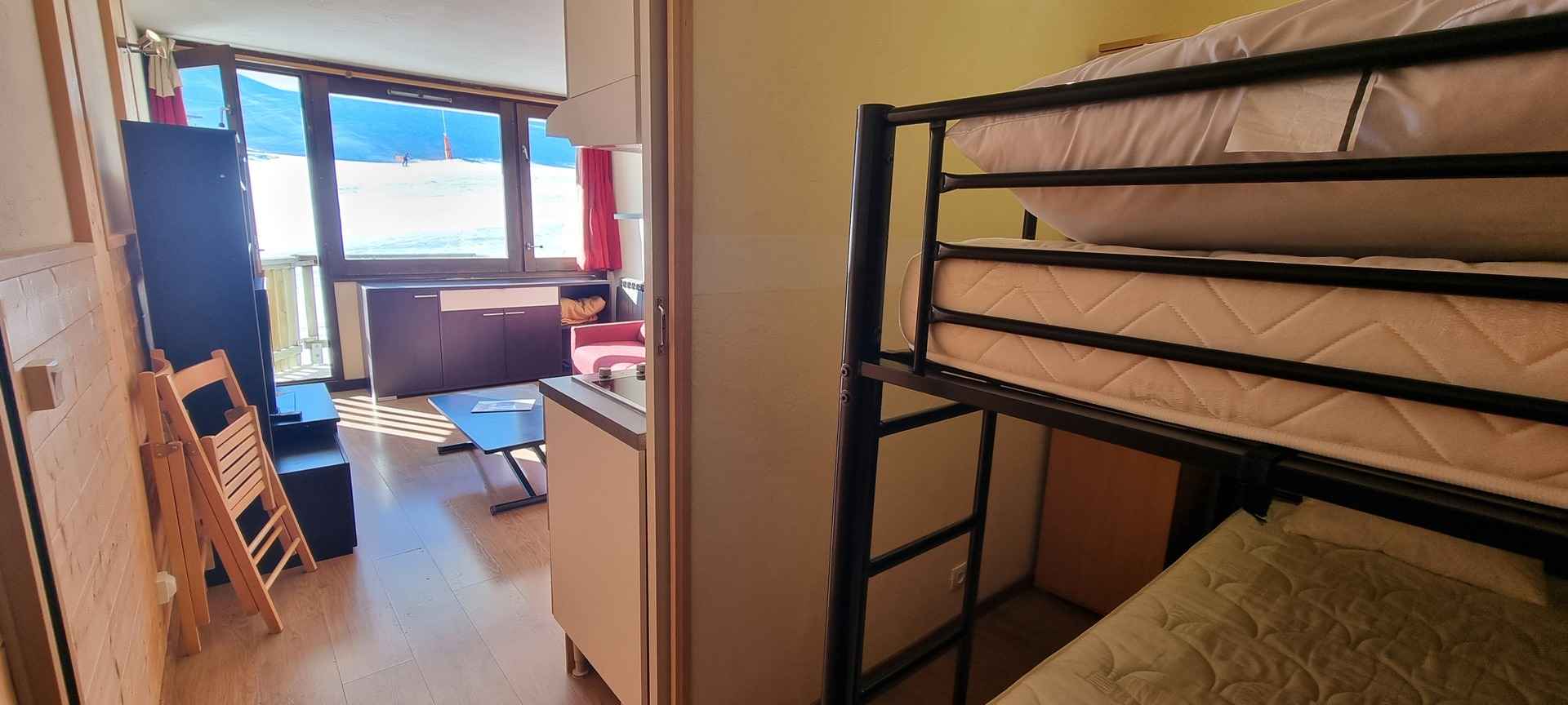 ce studio se trouve au niveau "h" du paquebot des neiges et est accessible par l'ascenseur "zénith". il se compose d'un séjour avec cuisine ouverte, d'une cabine et d'une salle de bains avec un wc. son balcon exposé sud offre une belle vue sur les pistes.