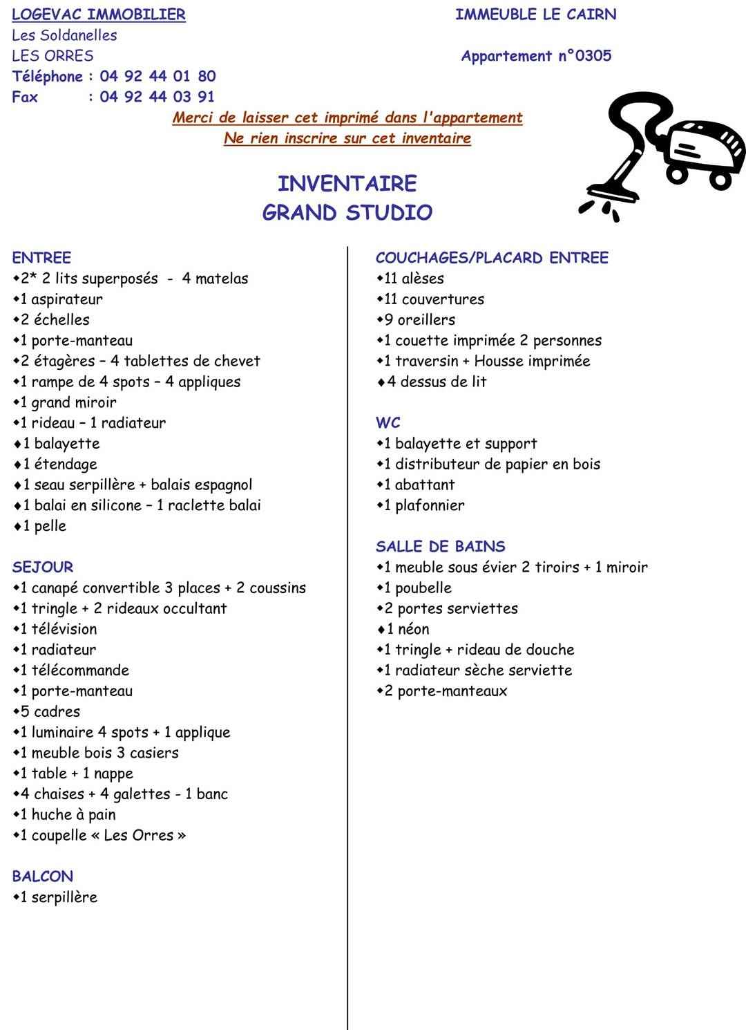 • Equipements : Four, réfrigérateur, Balcon, Box à Skis, Chauffage Electrique, Lave vaisselle, Micro onde, Télévision