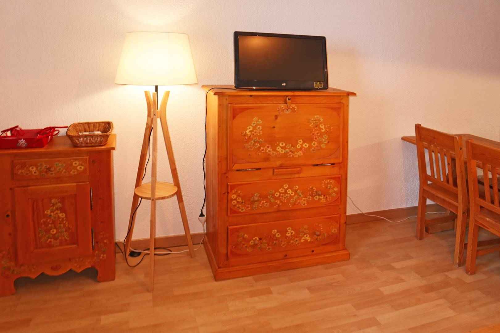 Très joli studio situé au centre de la station, départ et arrivée skis aux pieds, 5ème étage avec ascenseur, comprenant une entrée avec 1 lit mezzanine 2 places et un lit 1 place en-dessous, un séjour avec 1 banquette convertible 2 place, un coin cuisine équipé ouvert sur le séjour, une salle de bains et wc indépendants. parquet