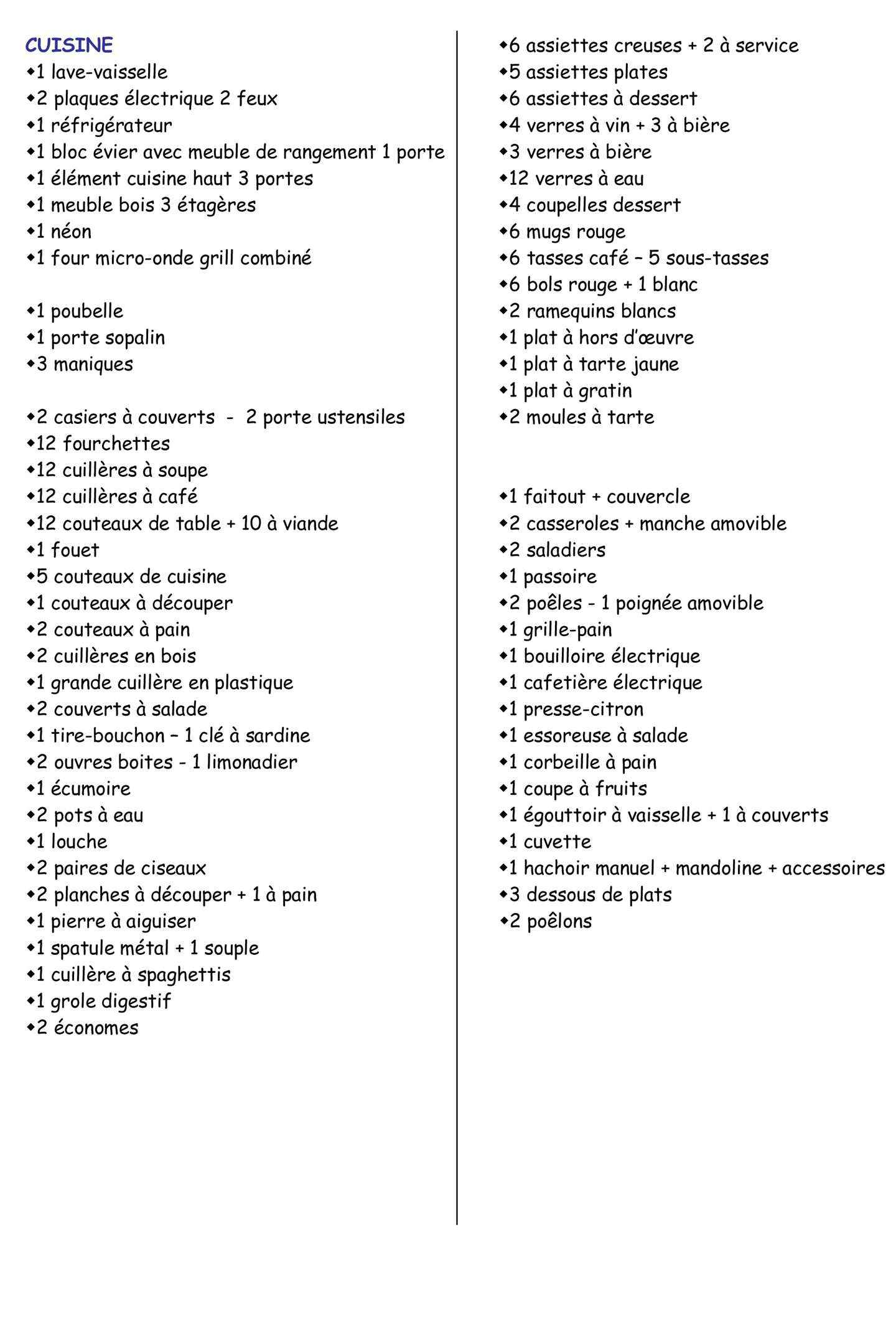 • Equipements : Four, Micro onde, Parquet, réfrigérateur, Télévision, Box à Skis, Chauffage Electrique
