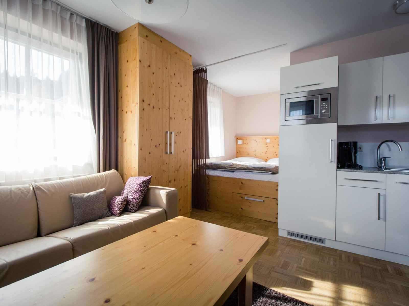 "studio 7 mit balkon" studio 25 m2. aménagement moderne et plaisant: séjour/chambre à coucher avec 1 lit double, table pour les repas et tv (satellite) (écran plat). coin cuisine (lave-vaisselle, 4 plaques vitrocéramiques, grille-pain, bouilloire électrique, micro-ondes, cafetière électrique). douche/wc. balcon. mobilier de balcon. belle