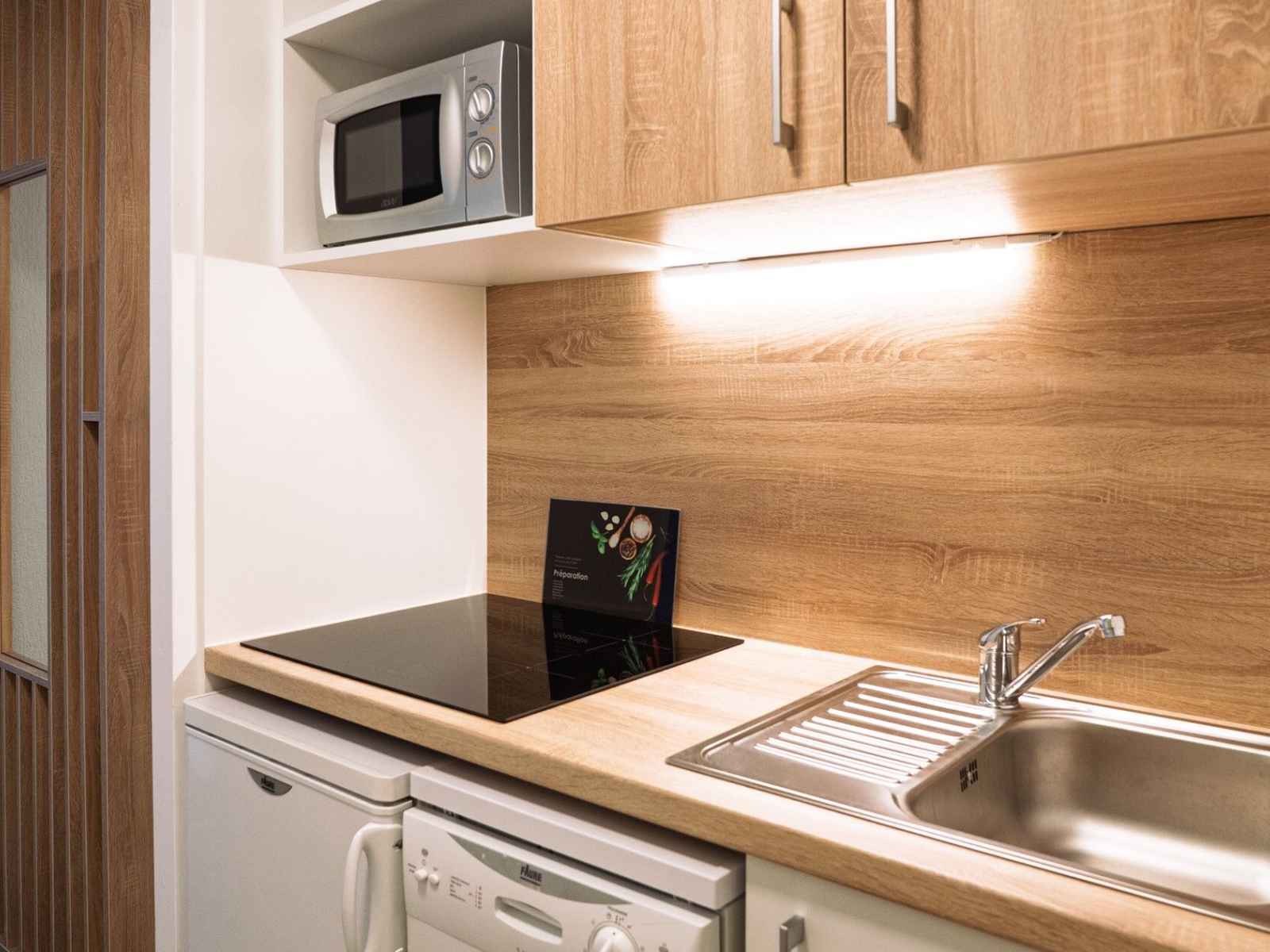 kitchenette équipée (réfrigérateur, plaque chauffante, micro-ondes, bouilloire)