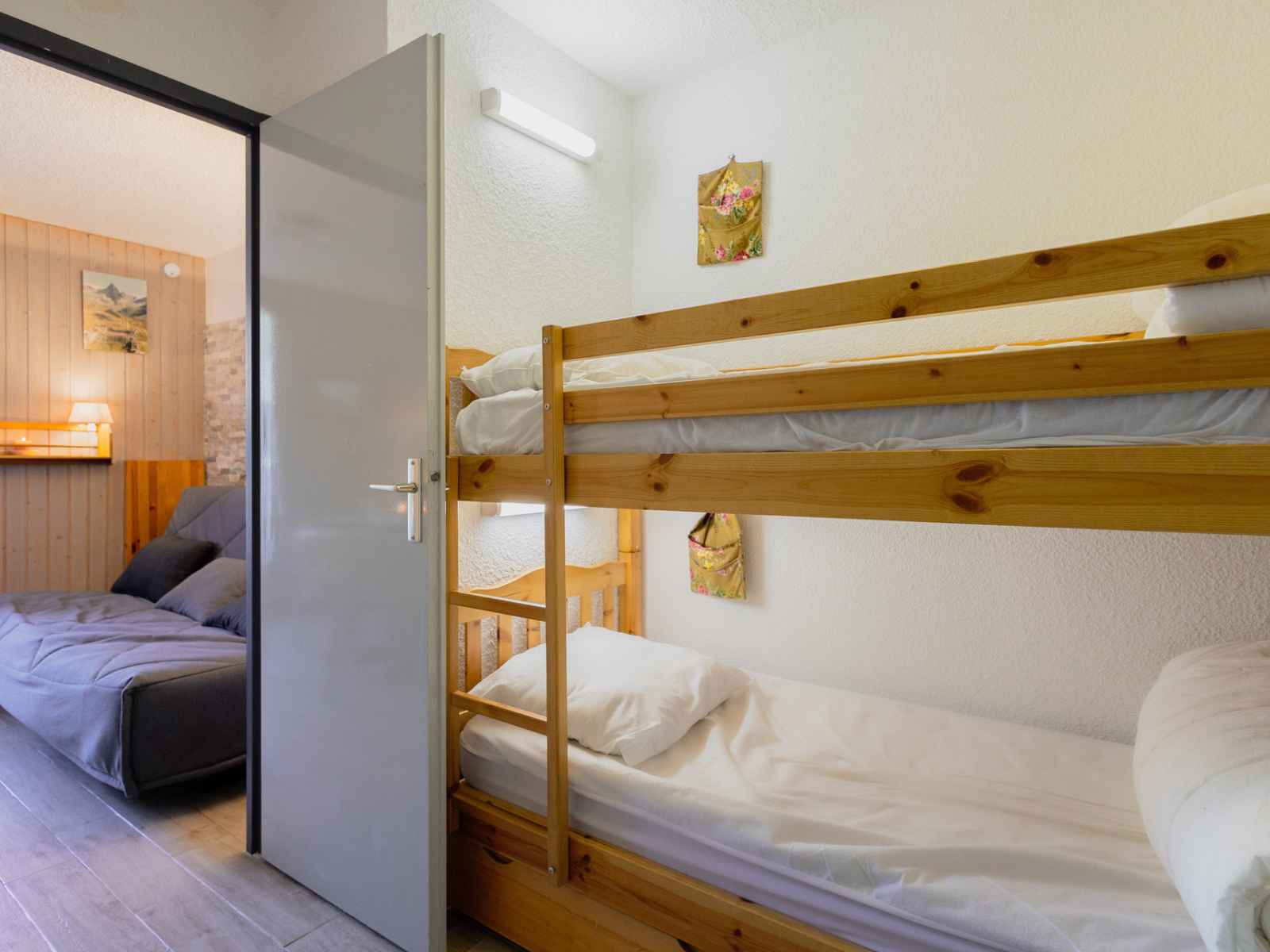 entrée (6m²/ séparée du séjour par une porte) : 2 lits superposés (2x 80x190cm)